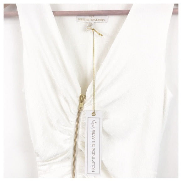 Dress the Population Cher Zip Maxi Dress in White Size XXS