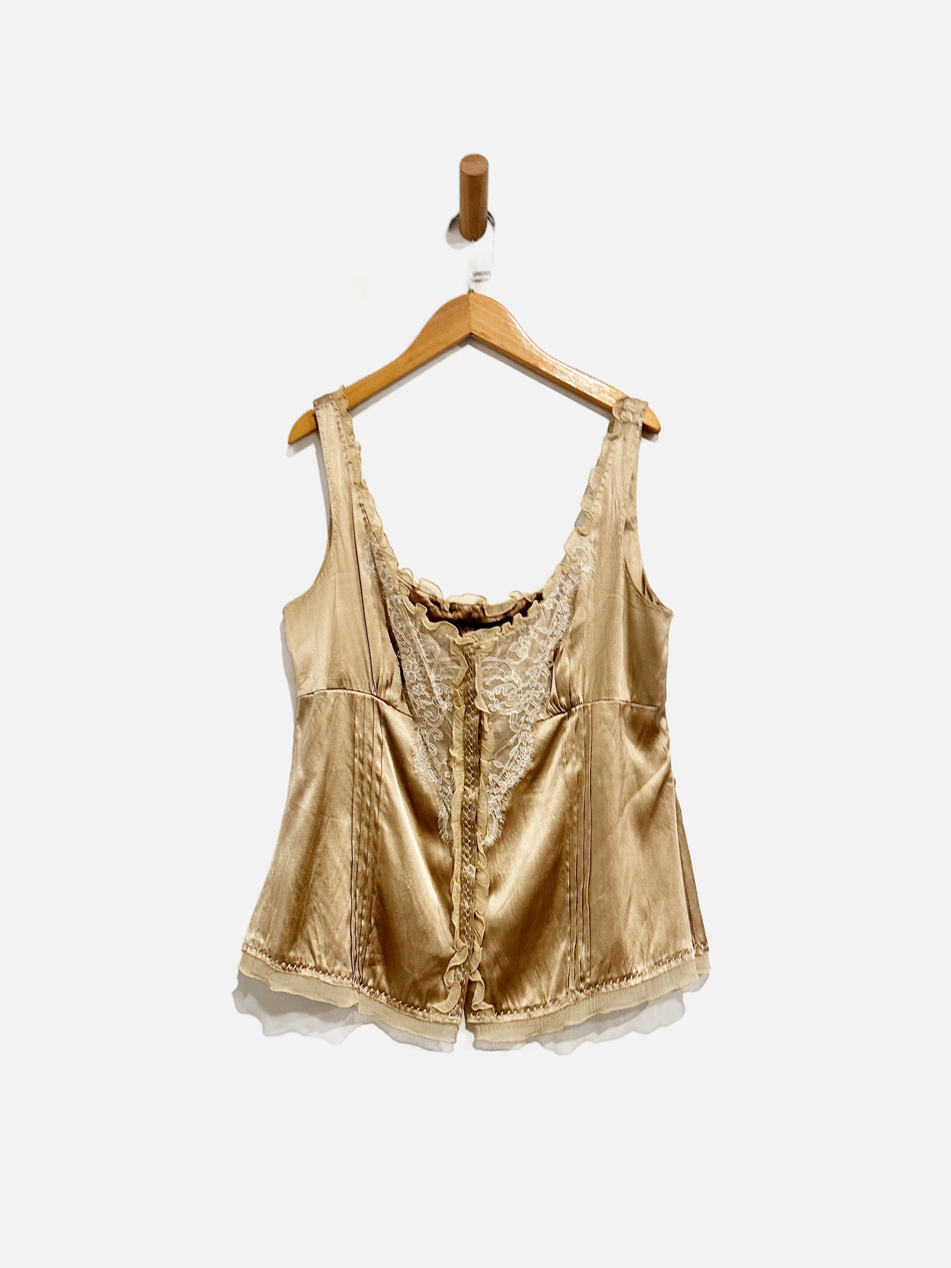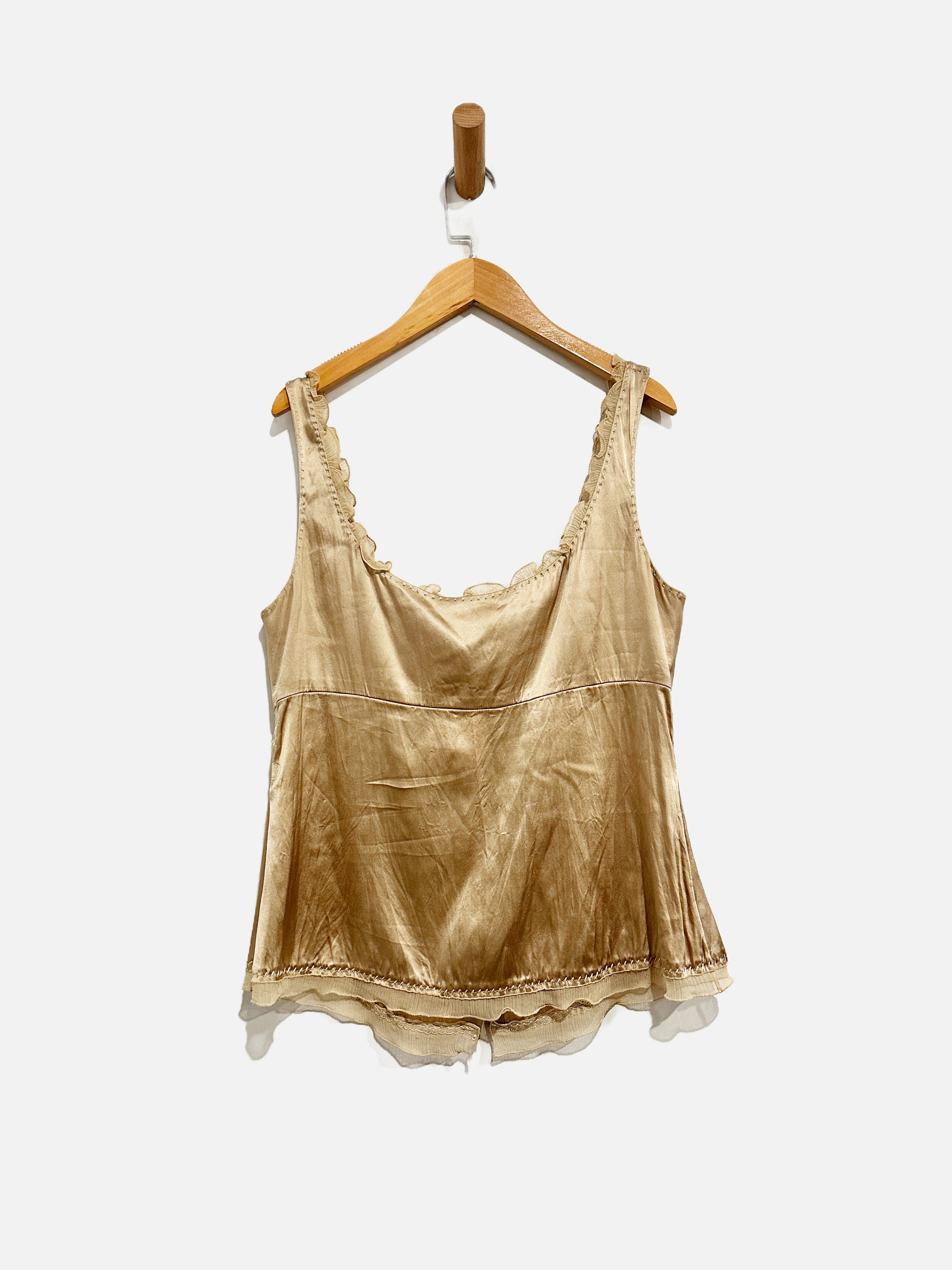 Elie Tahari Y2K Gold Silk Lace Cami - Large