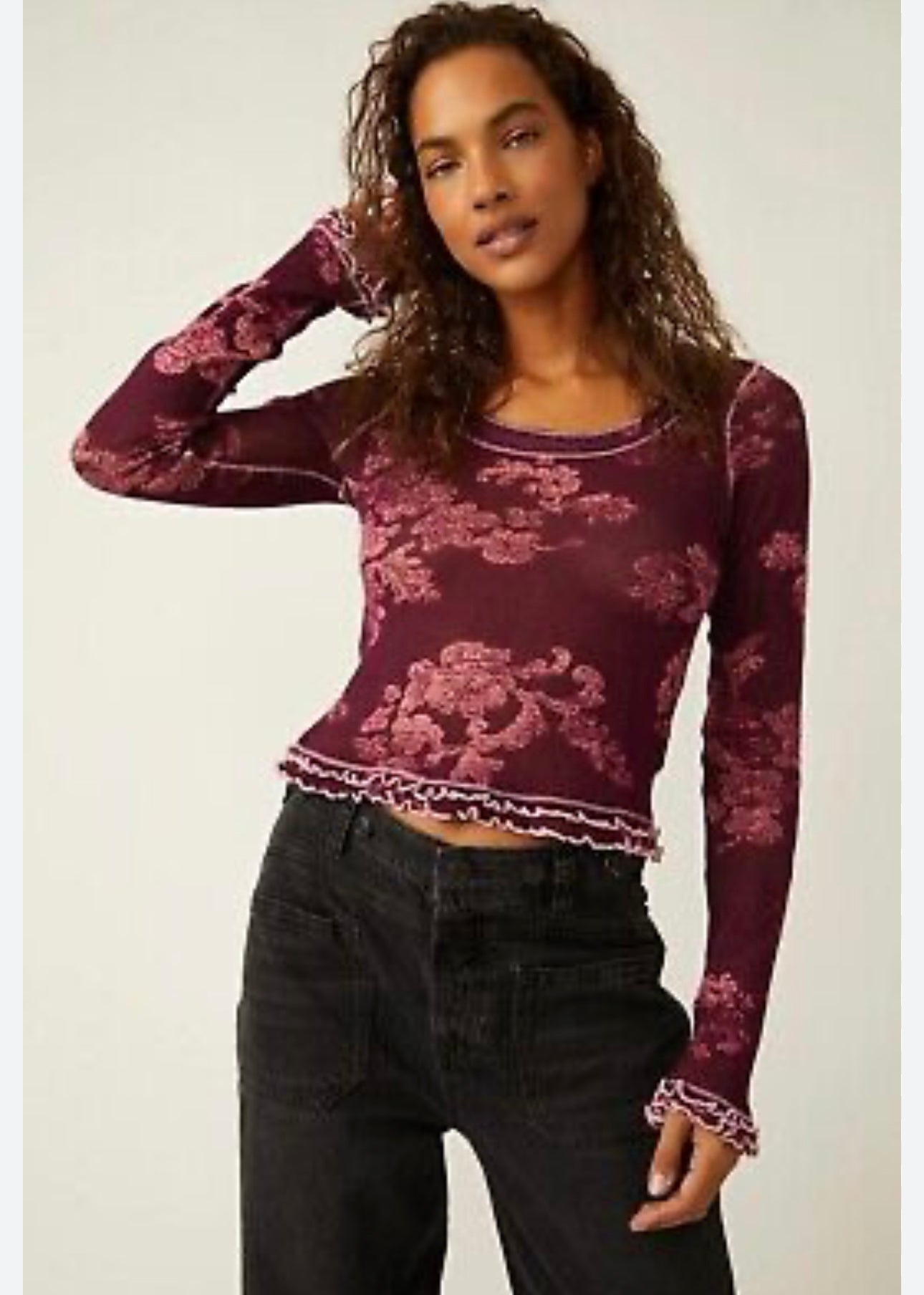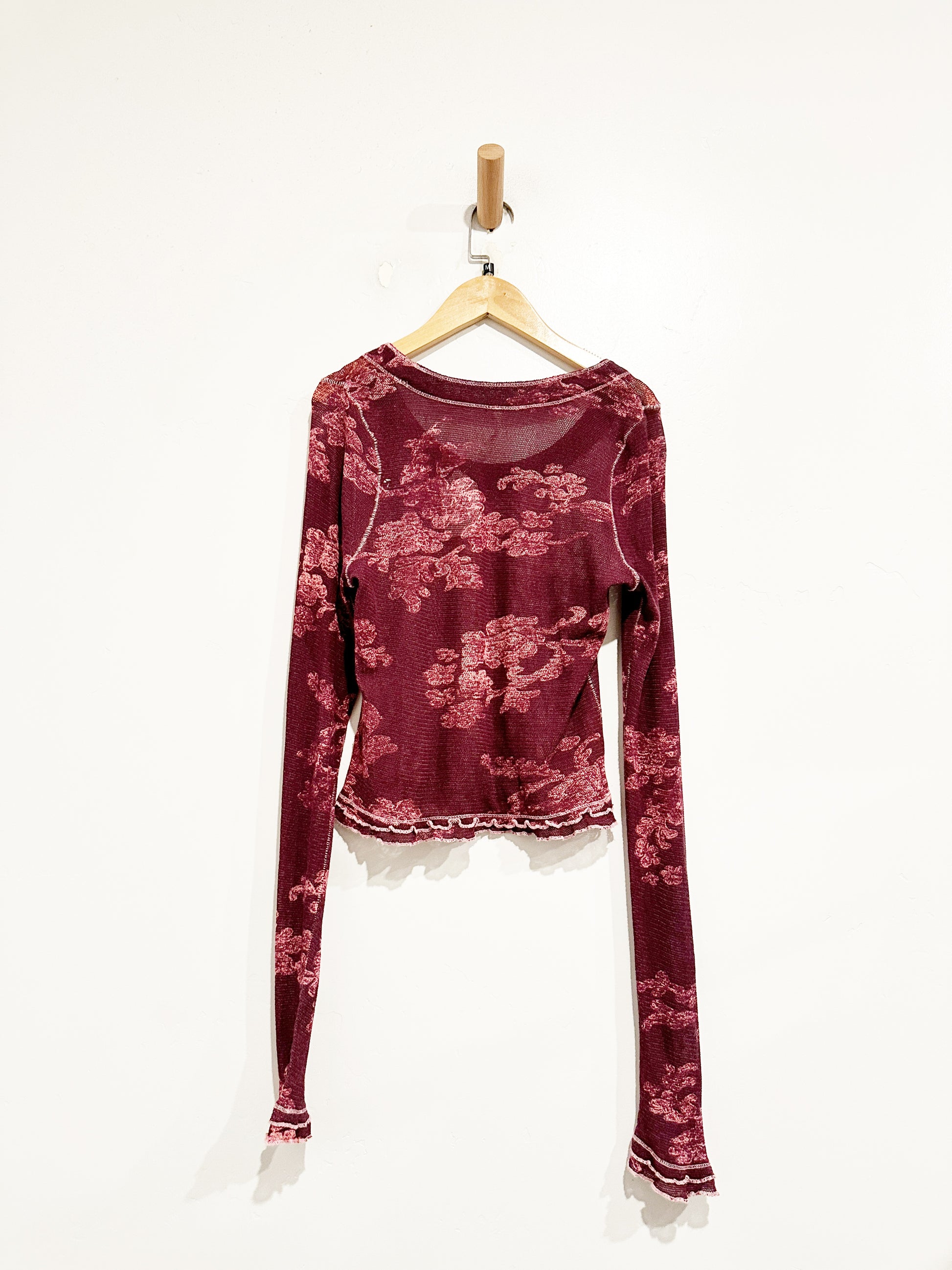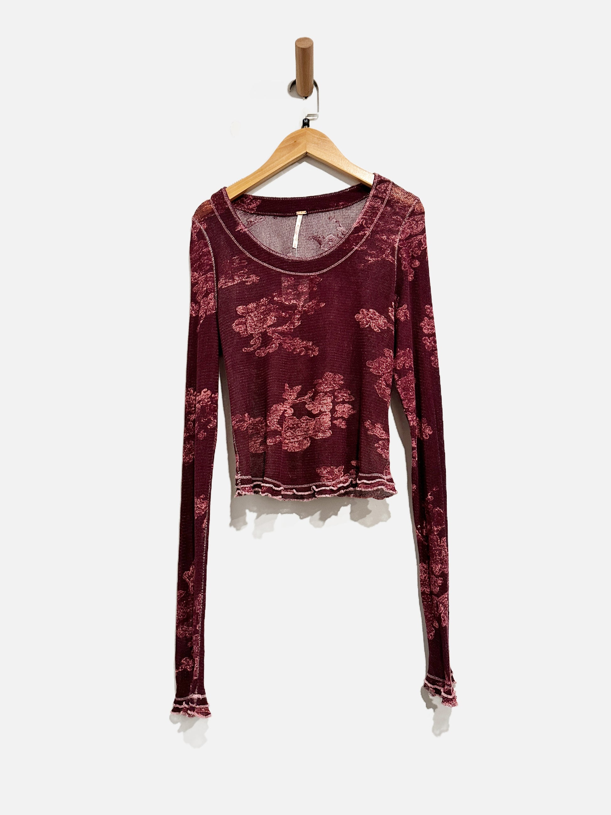 Free People Garner Purple and Pink Floral LS Top - Medium