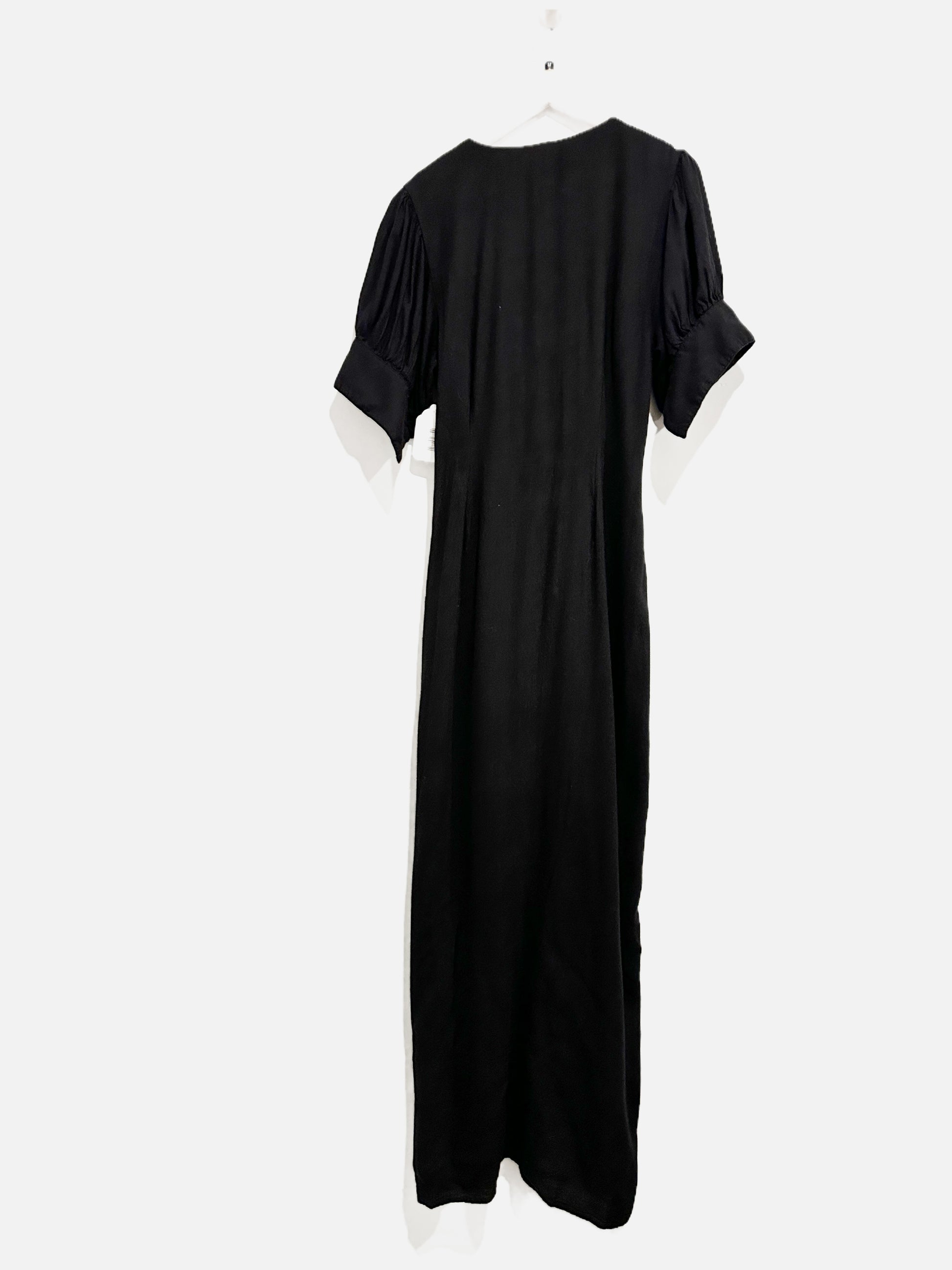 Free People Vintage Summer Black Button Front Midi Dress - Medium
