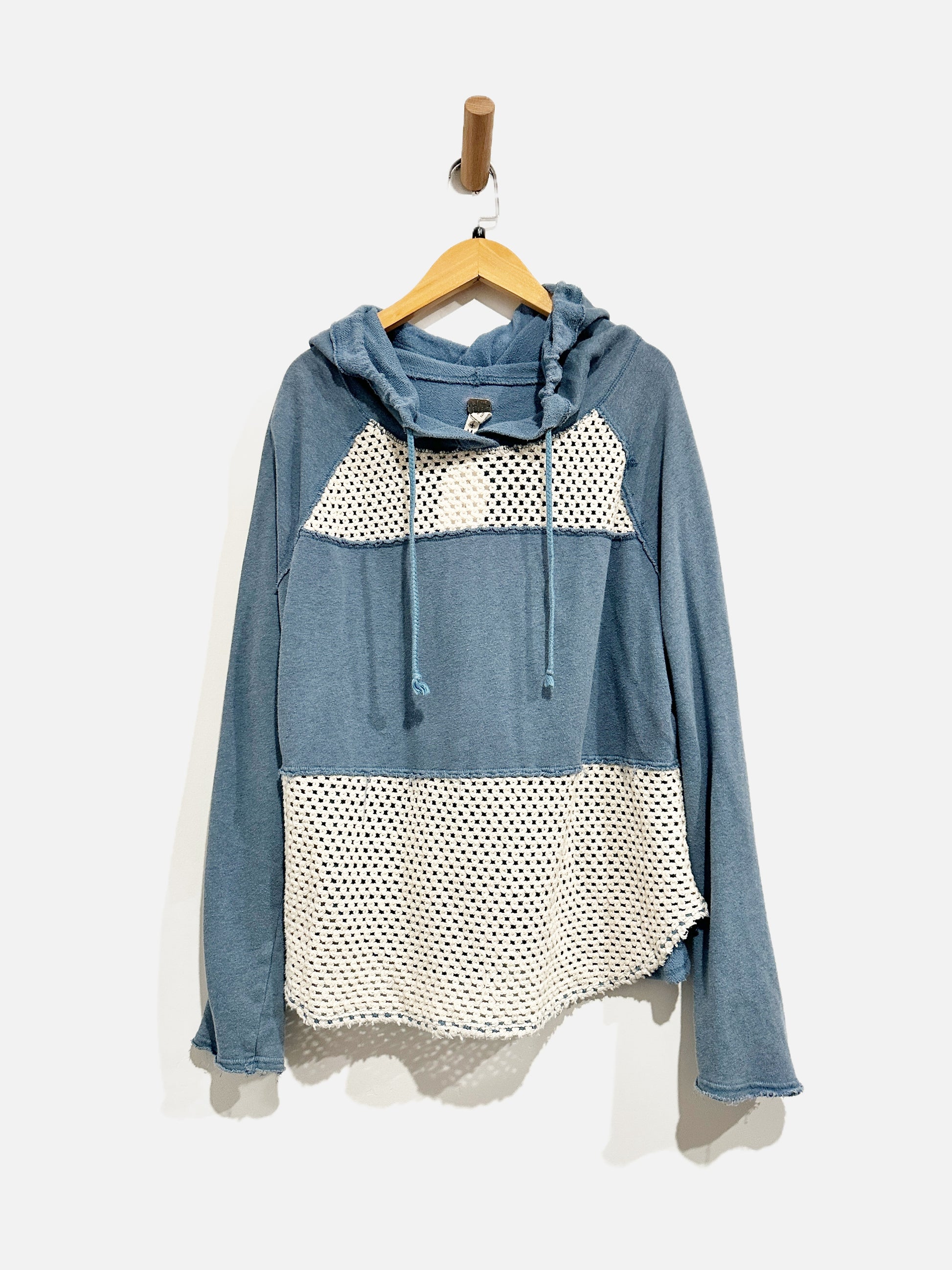 Free People Blue Crochet Inset Hoodie - Medium