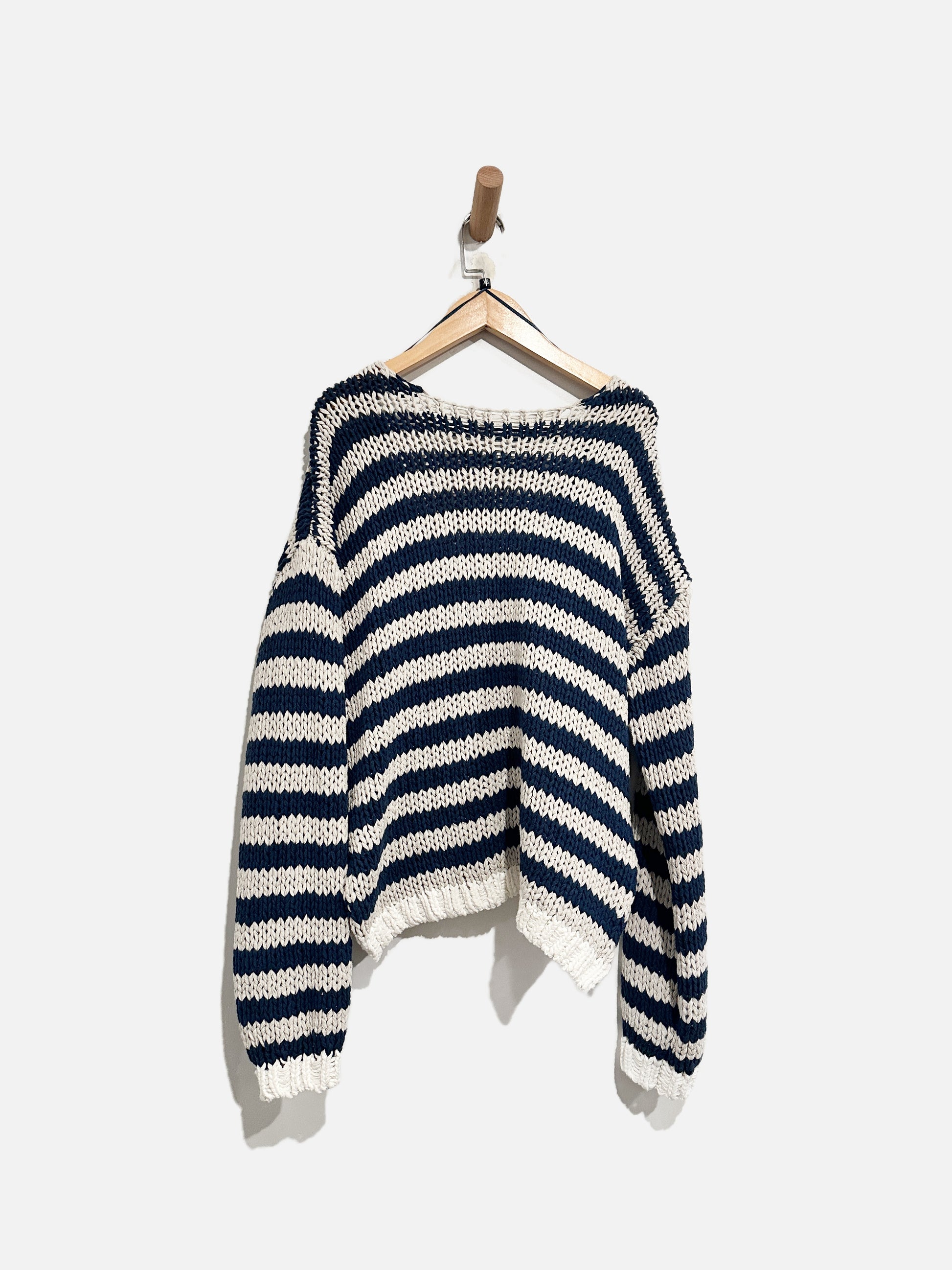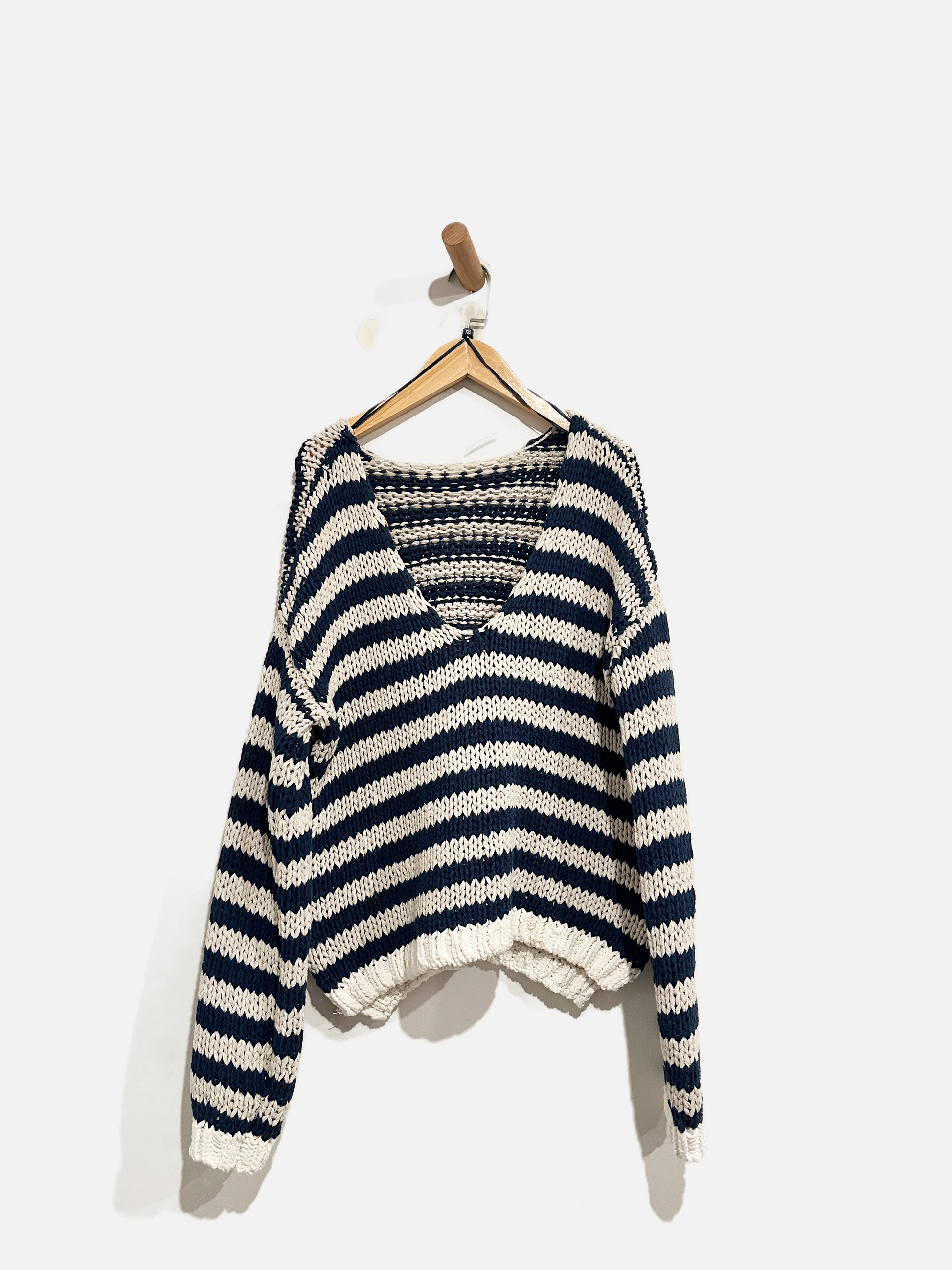 Free People Portland Blue Stripe Chunky Knit Top - XS