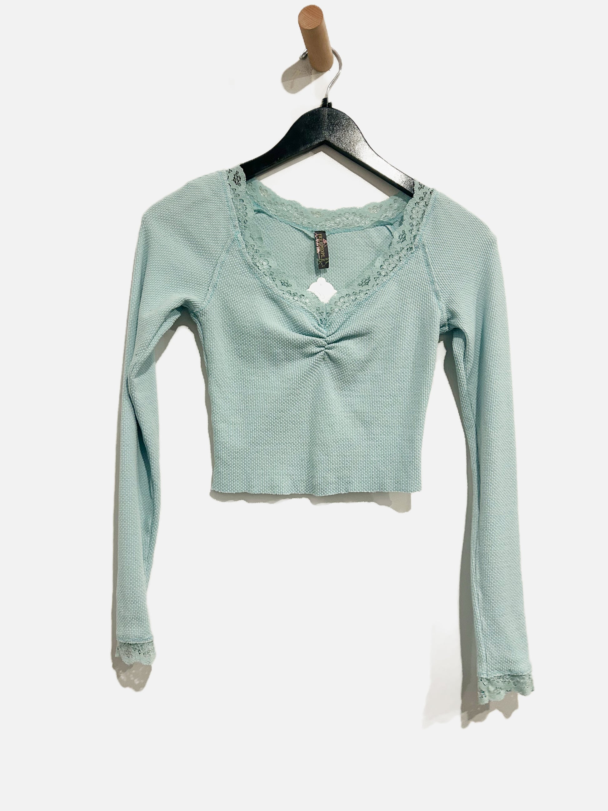 Free People Blue Cropped Waffle Knit LS - Small