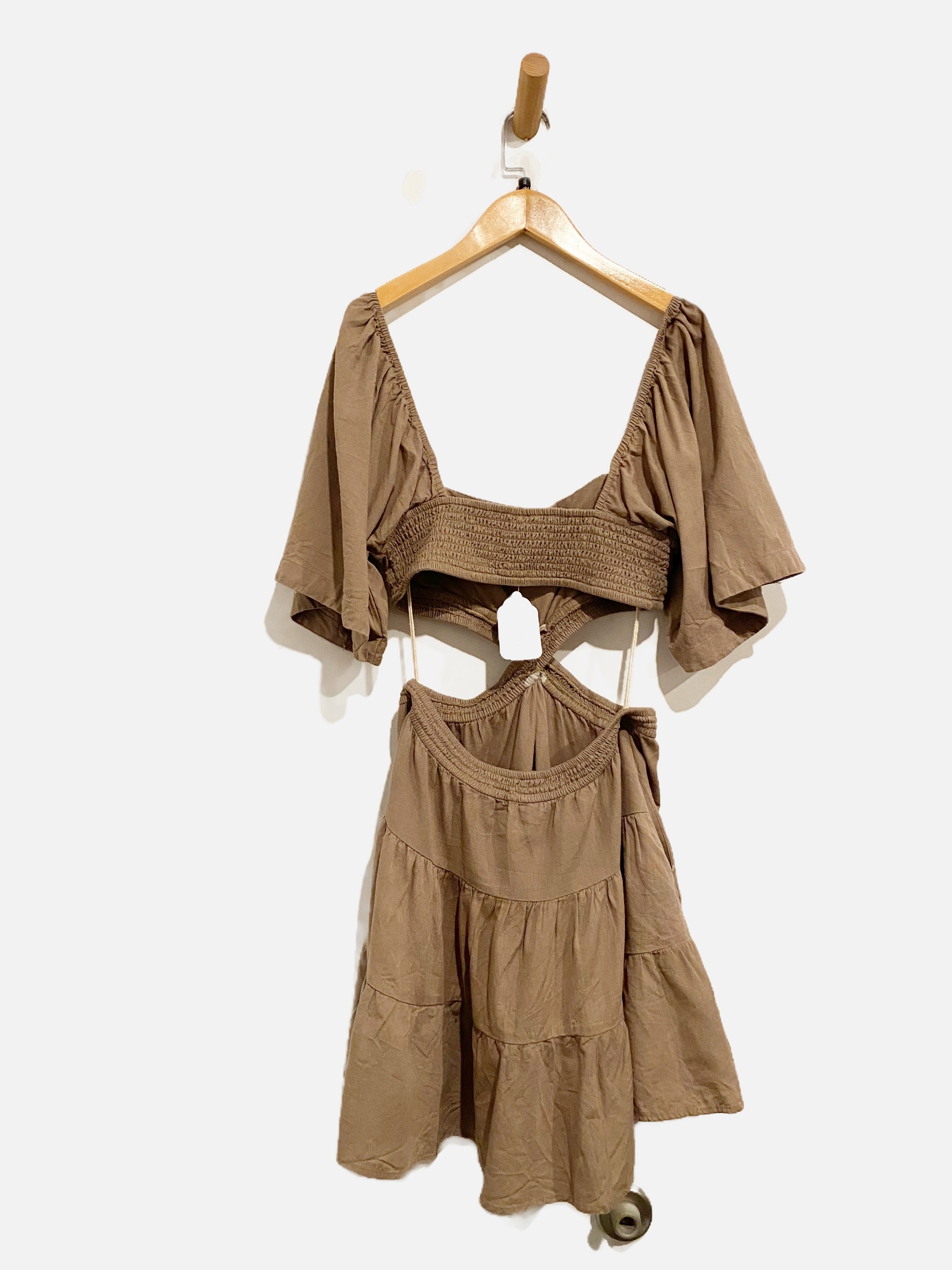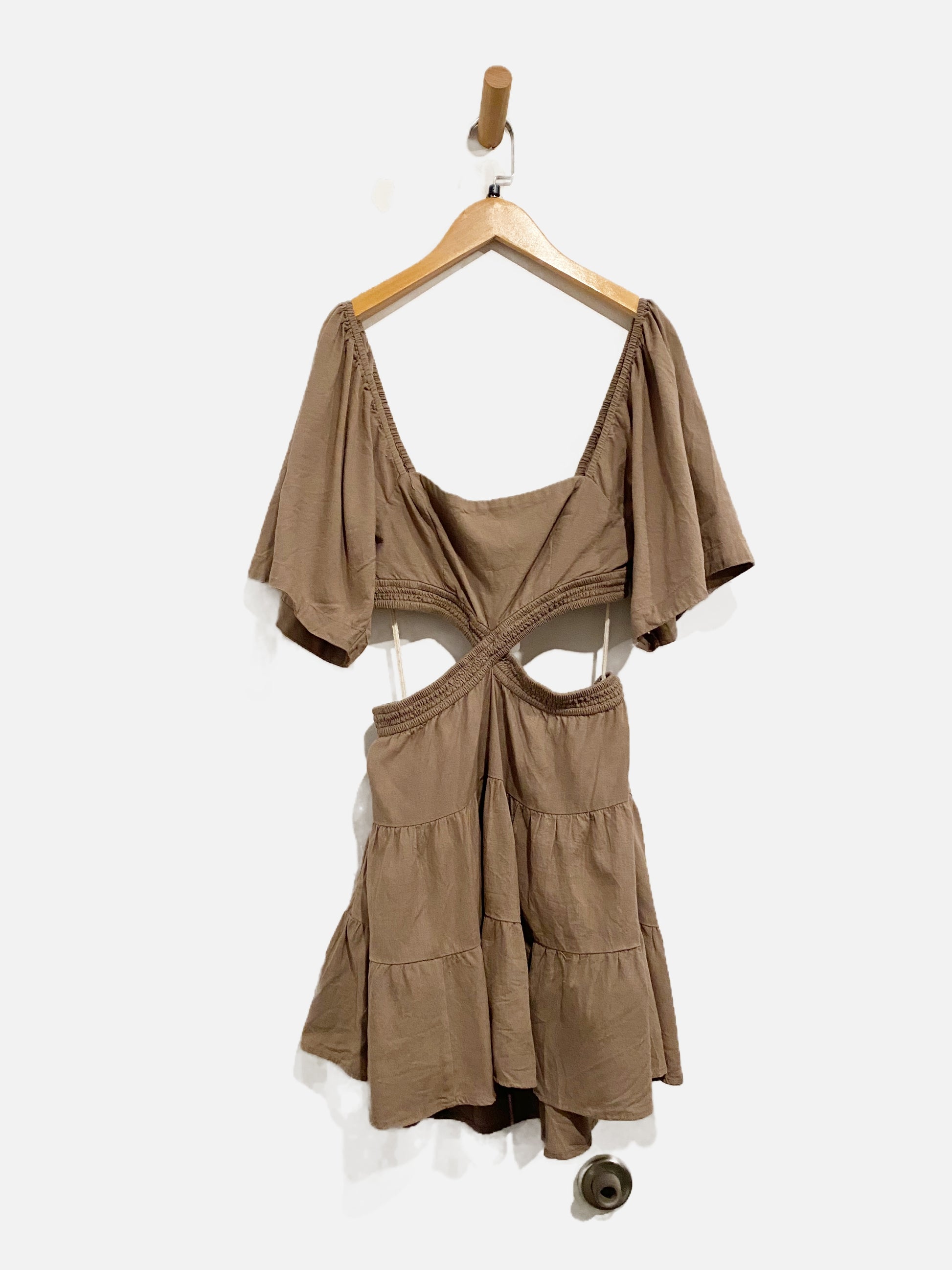 Free People Cross of Sunlight Brown Linen Cut Out Dress - Small