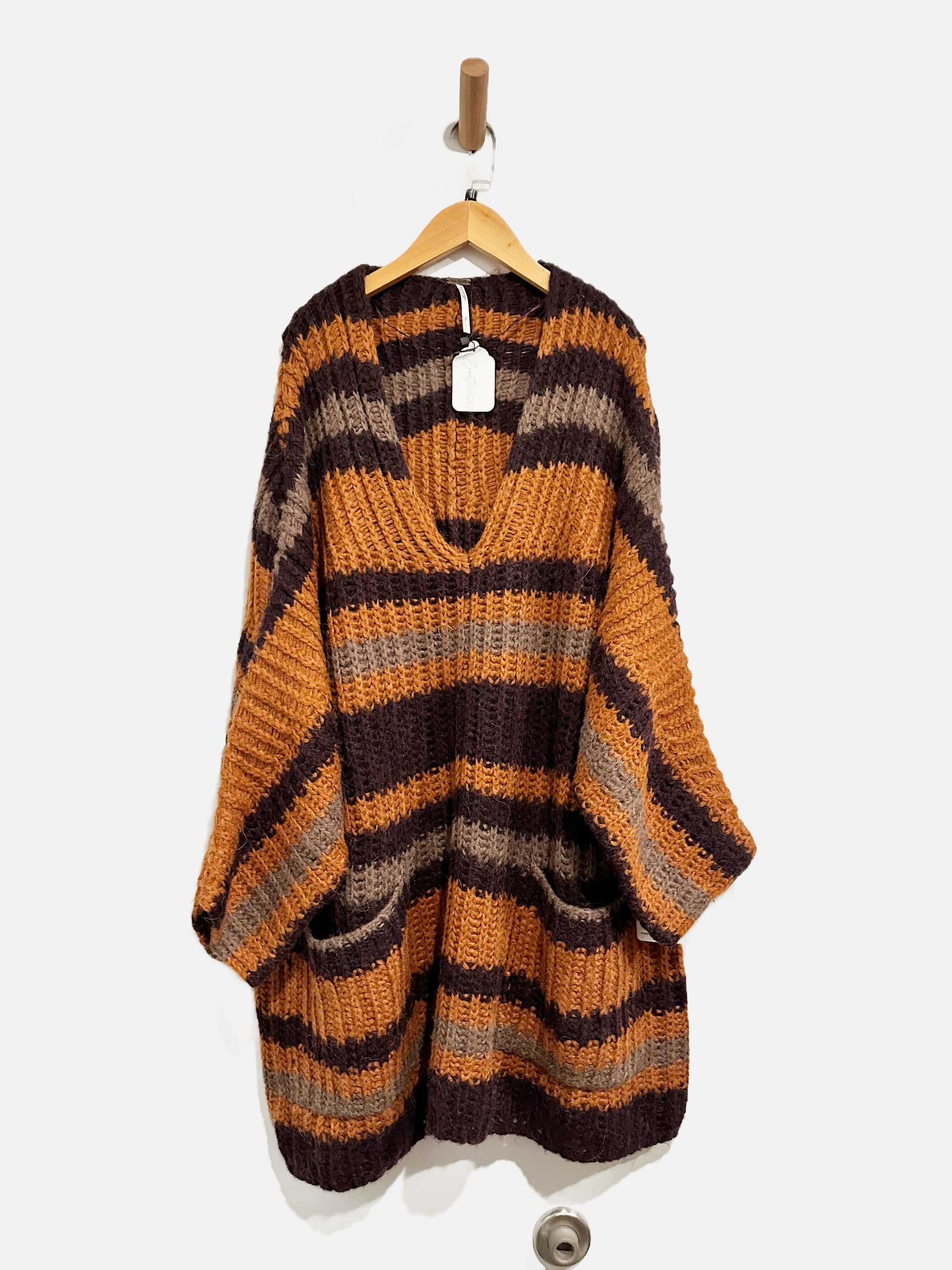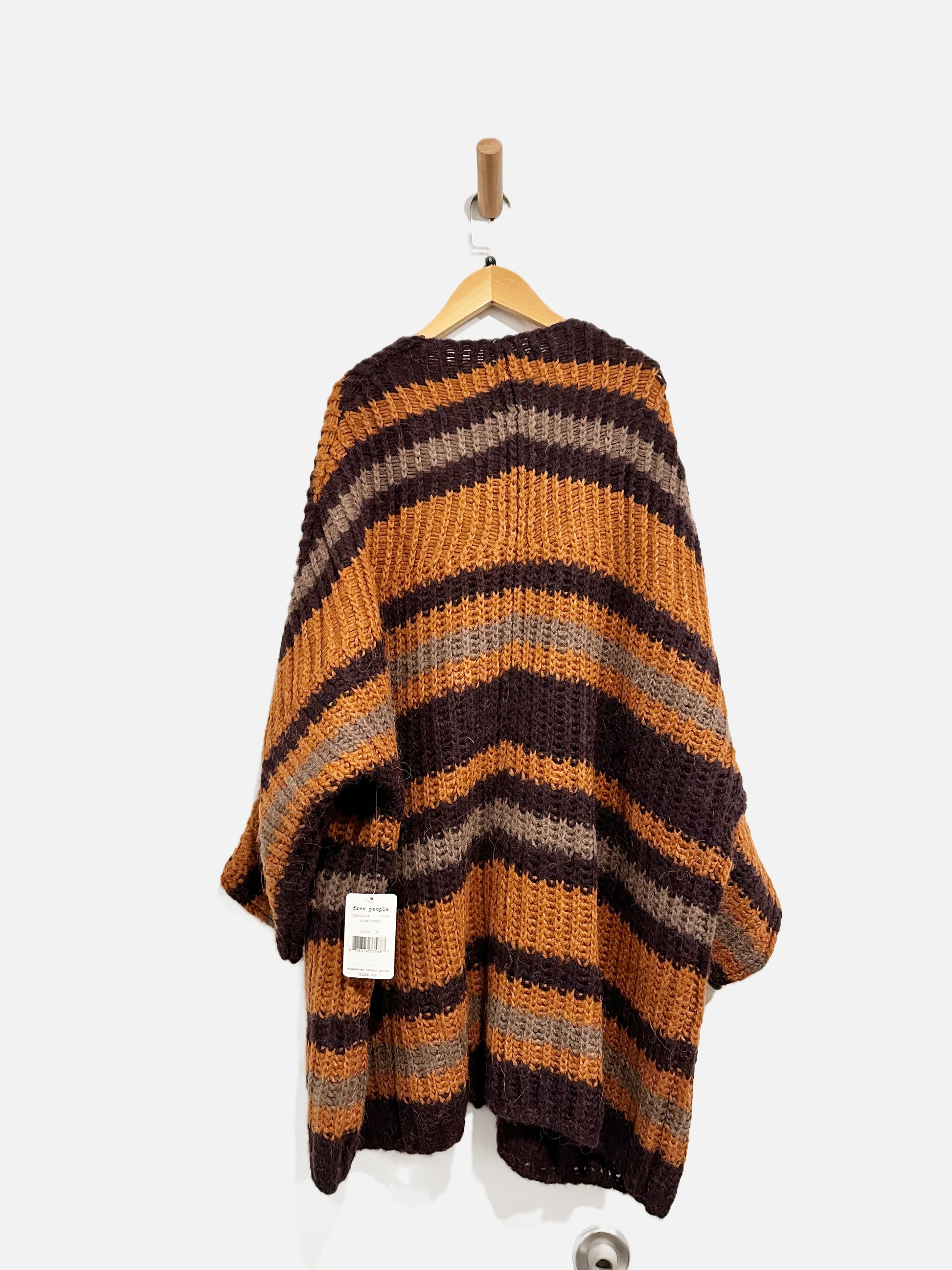 Free People Brown/Purple/ Cable Knit V-Neck Sweater - Small