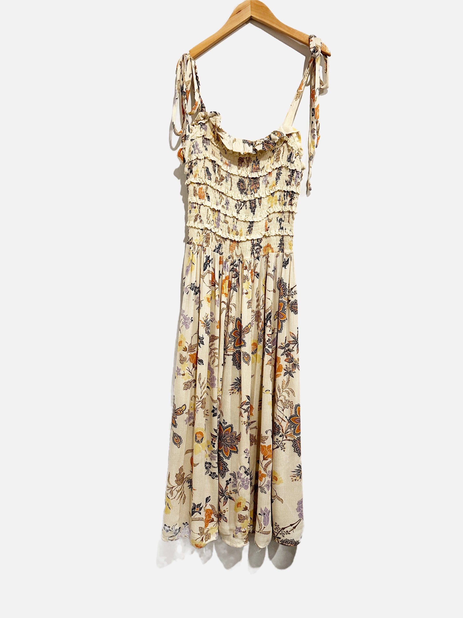 Free People Isla Cream Floral Midi Dress - Small