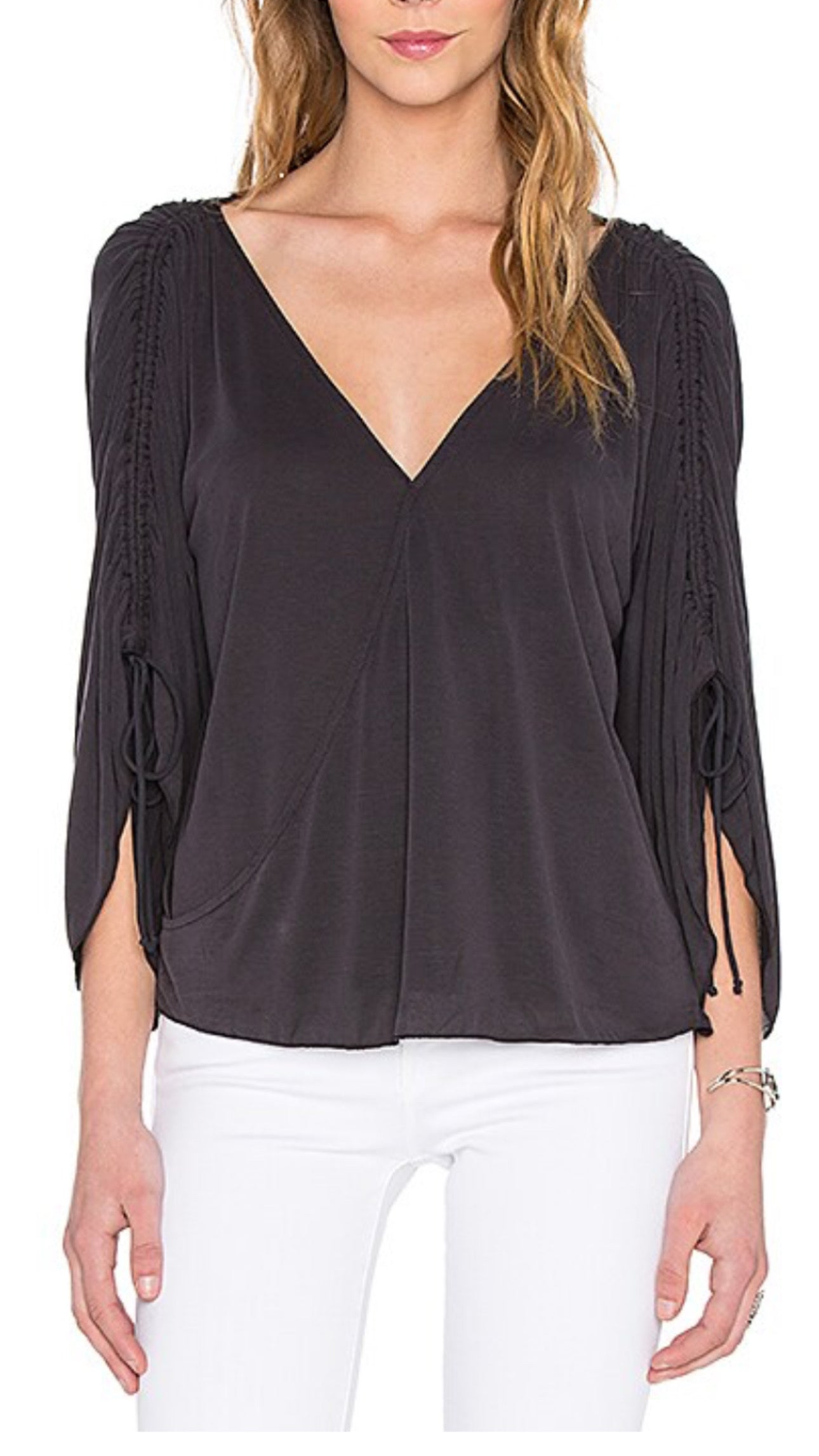 Free People Gray Cinched Sleeve Top - XS