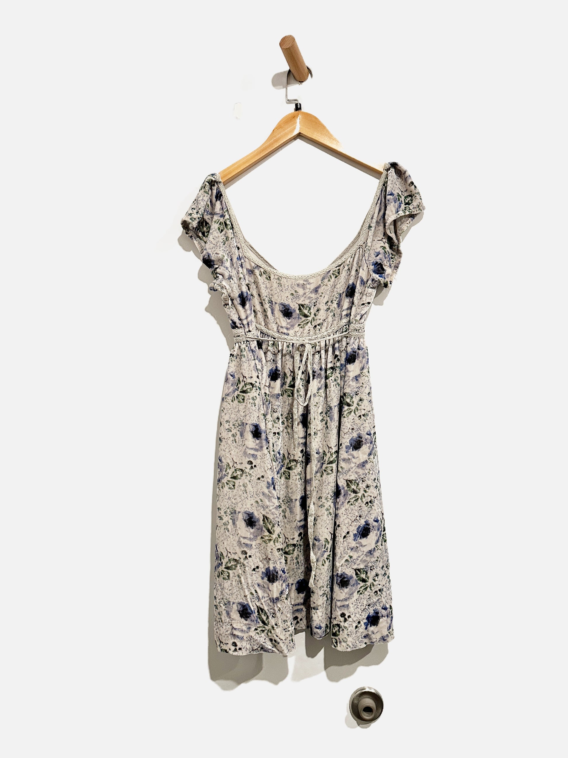 $$ Free People Gray Velvet Floral Mini Dress - 4
