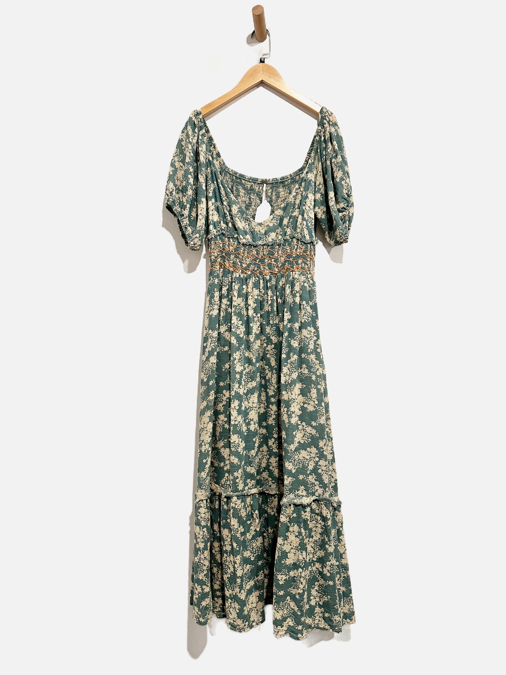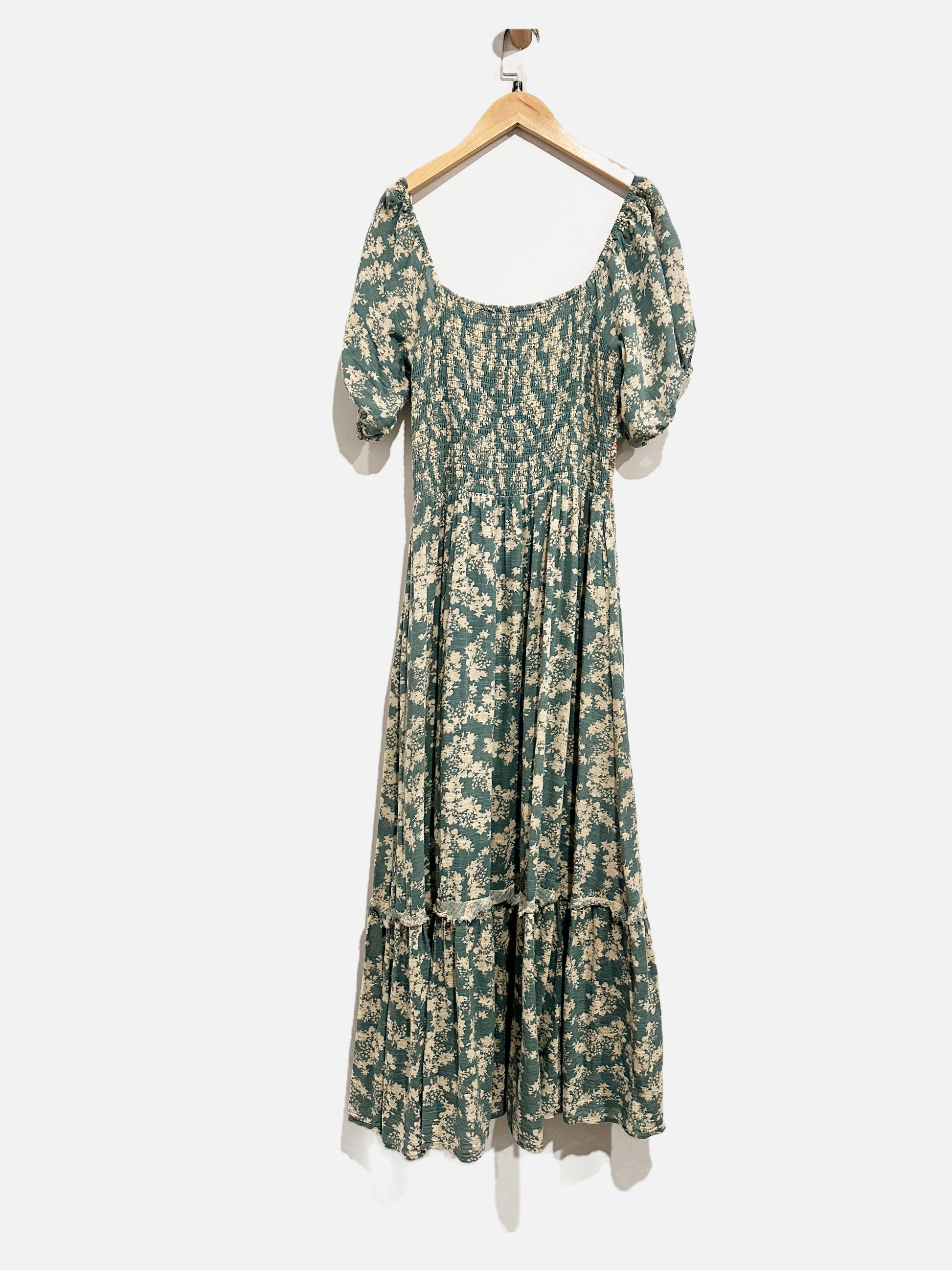 Free People Ellie Green Floral Smocked Midi Dress - Medium