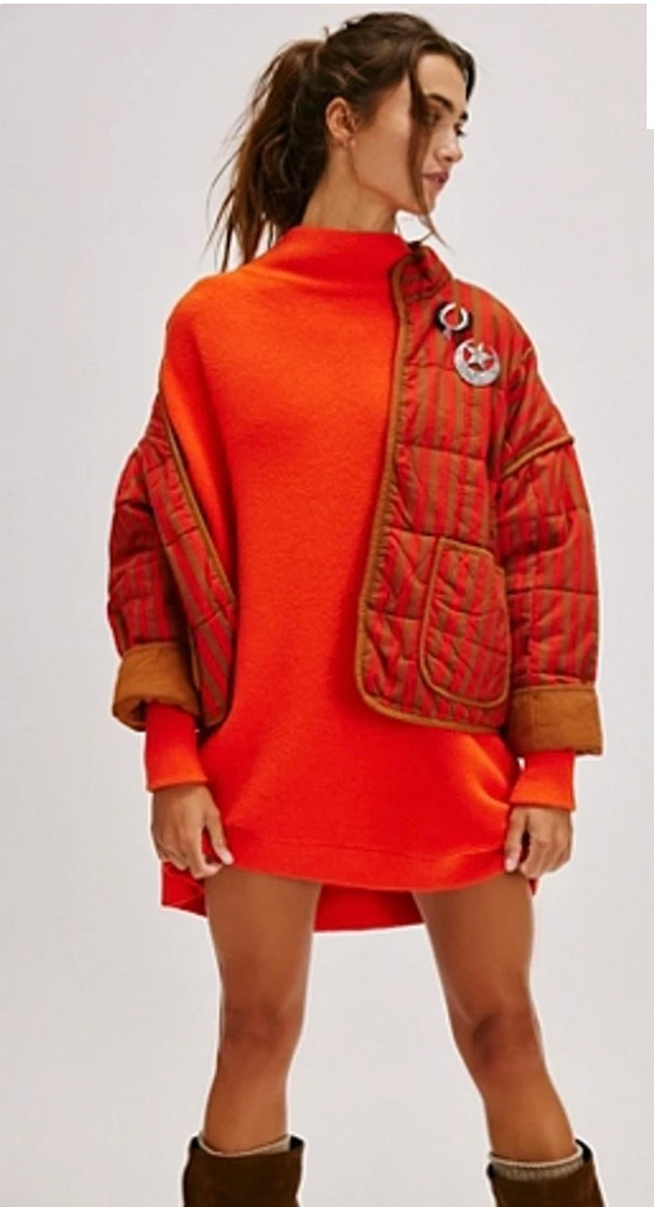 Free People Ottoman Sweater Tunic in Cherry Tomato - Large