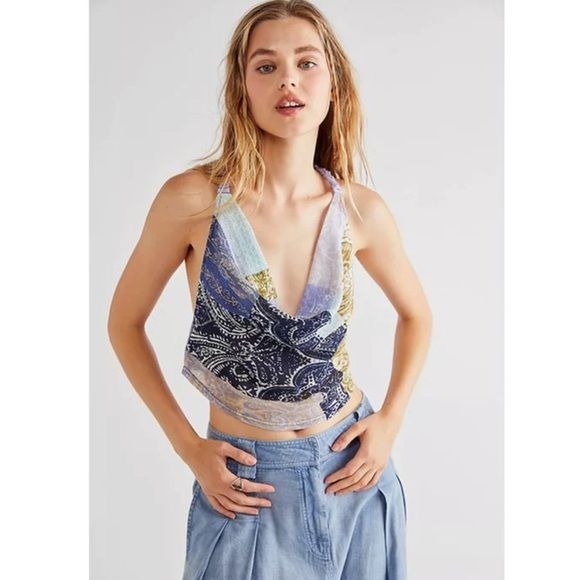 The ideal tank to take you from day to night featured in a cropped, cowl neck silhouette and patched, bandana-inspired design for forever timeless style.