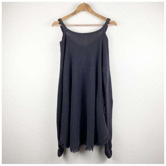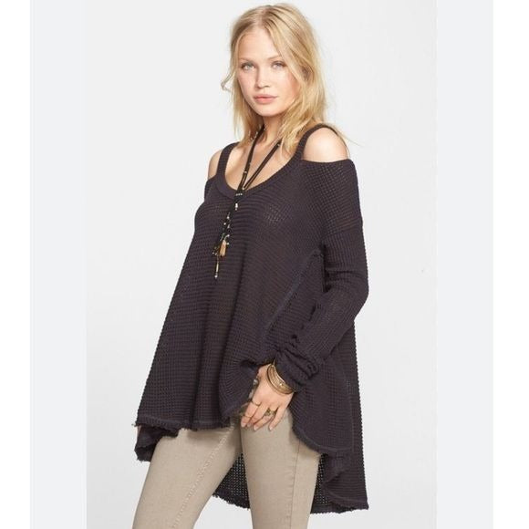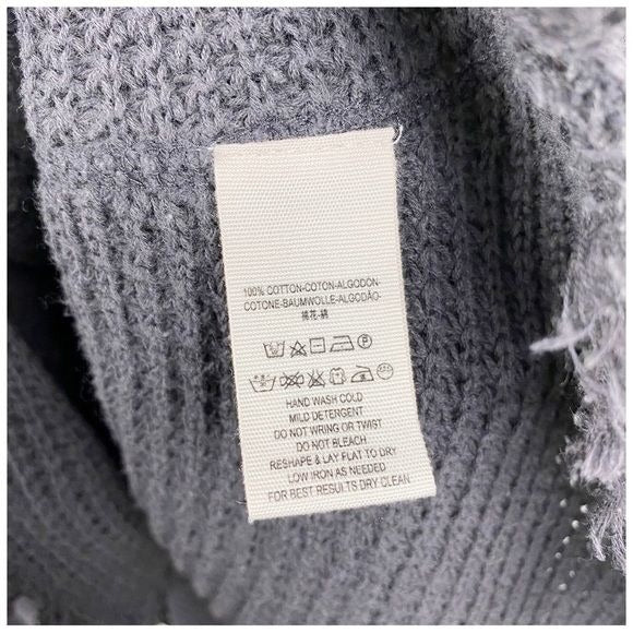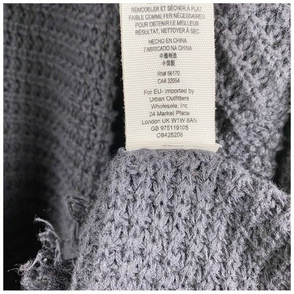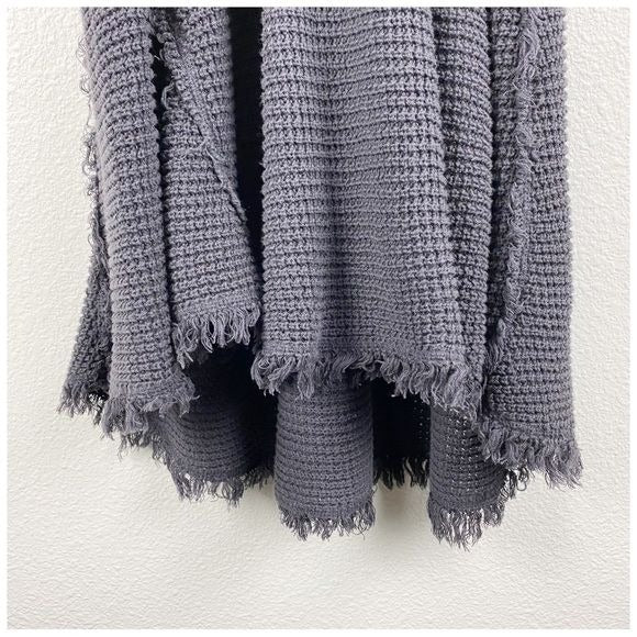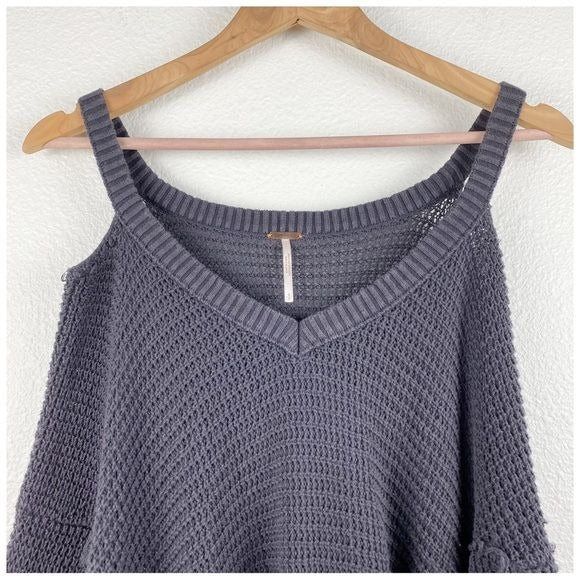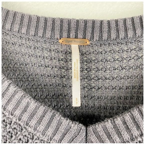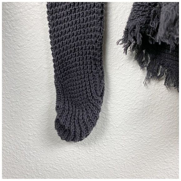 Free People Moonshine V-Neck Charcoal Distressed Waffle Knit Sweater Size Small