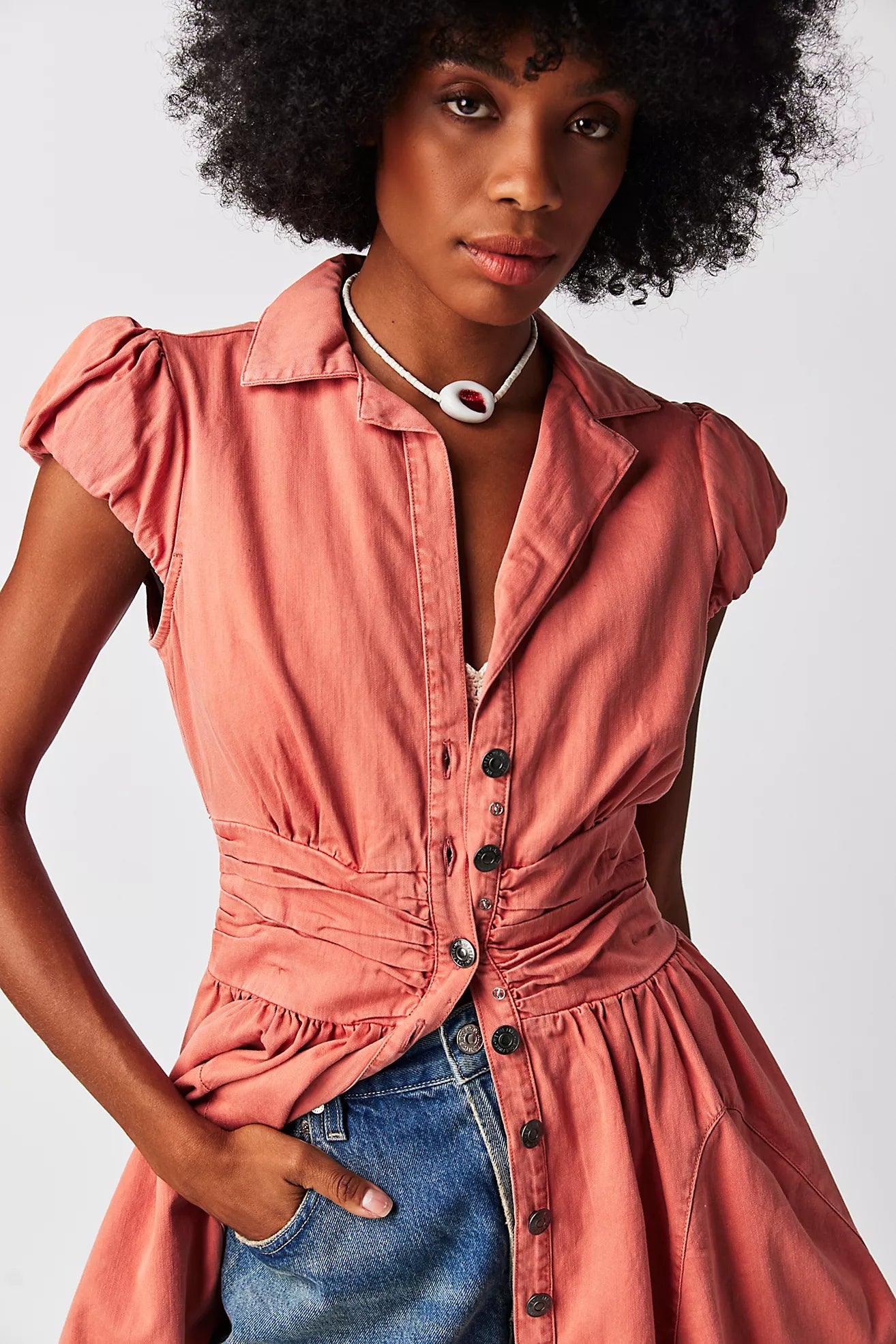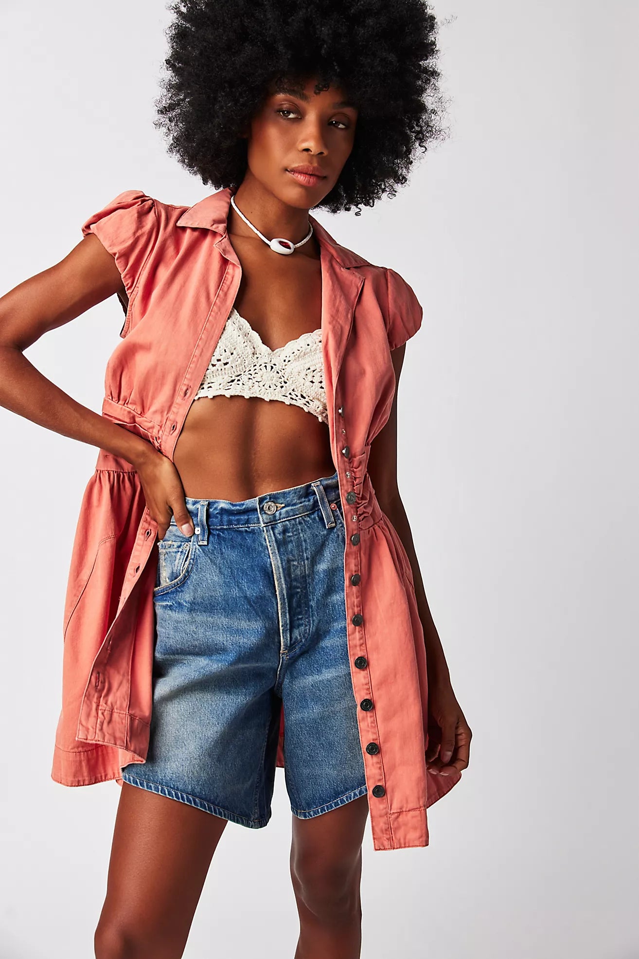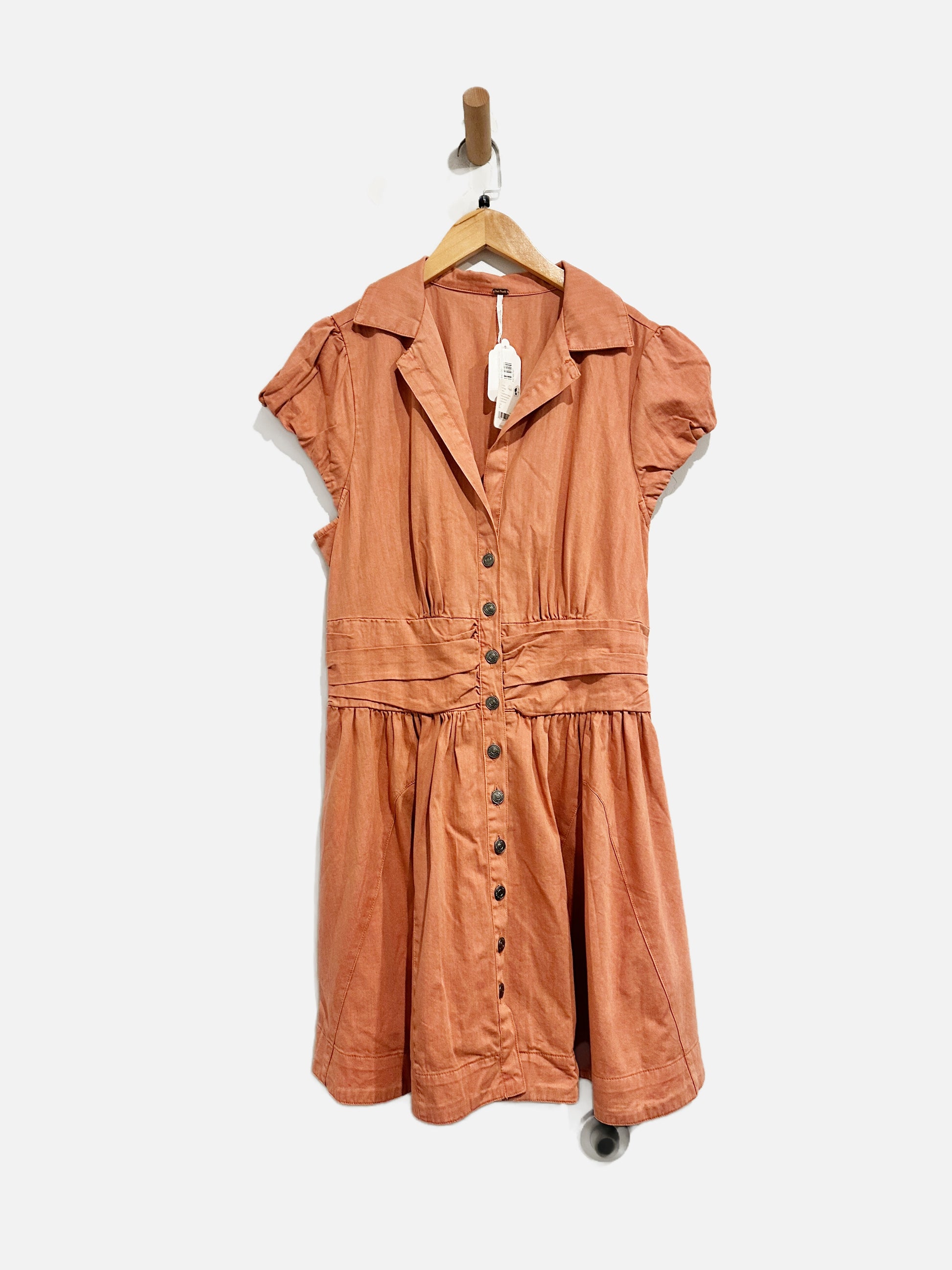 Free People NWT Chester Orange Button Front Mini Dress - Large