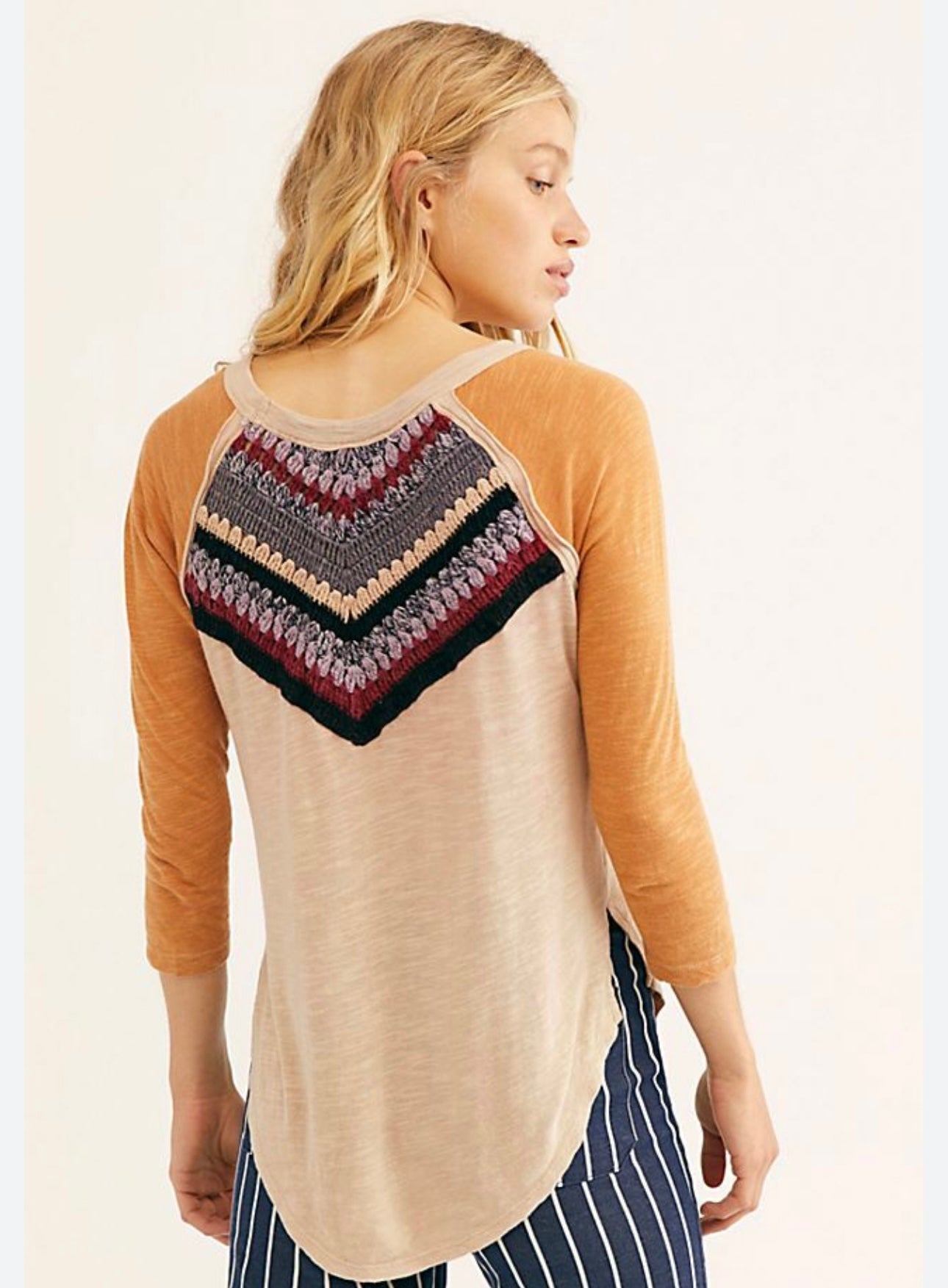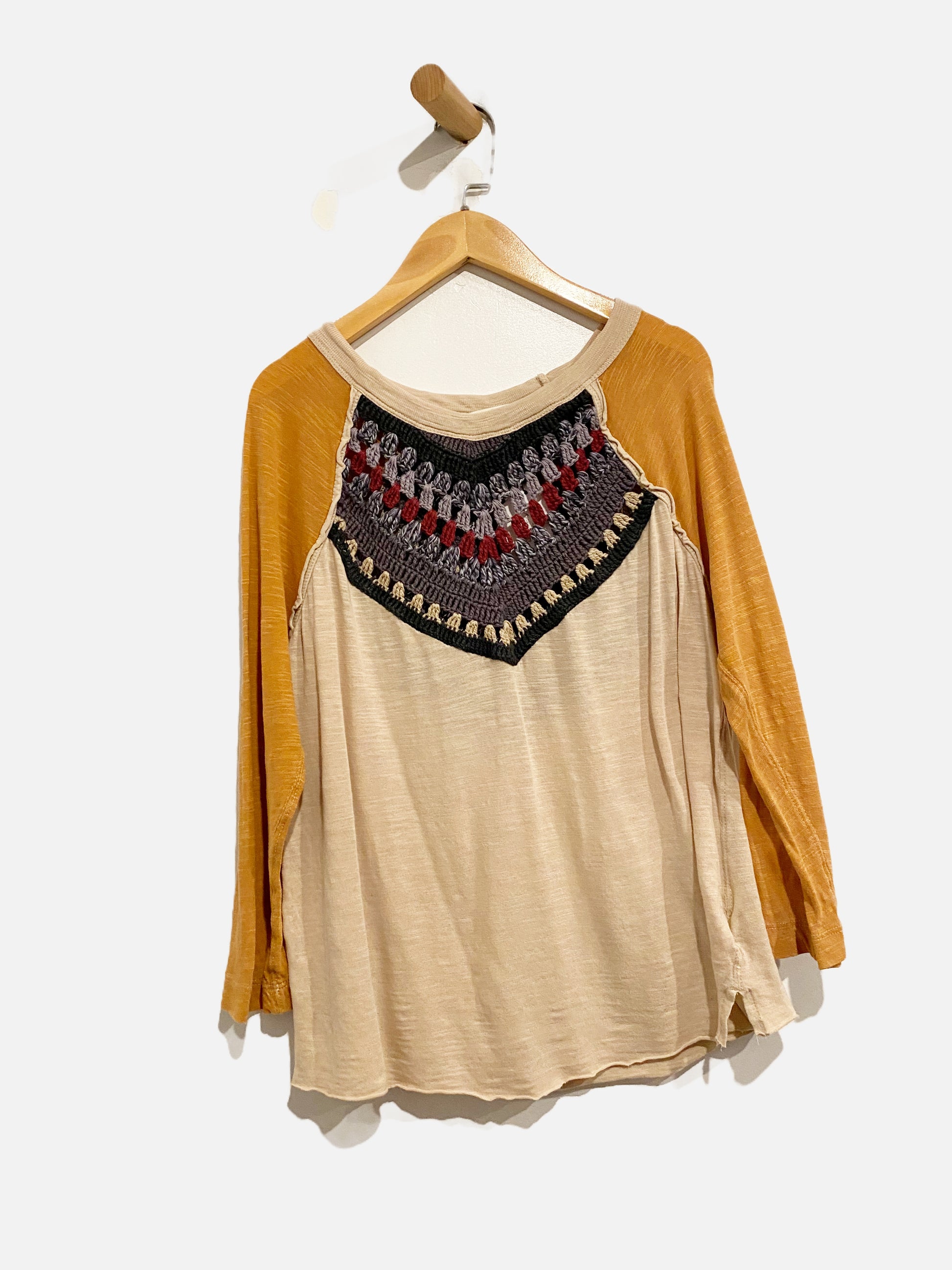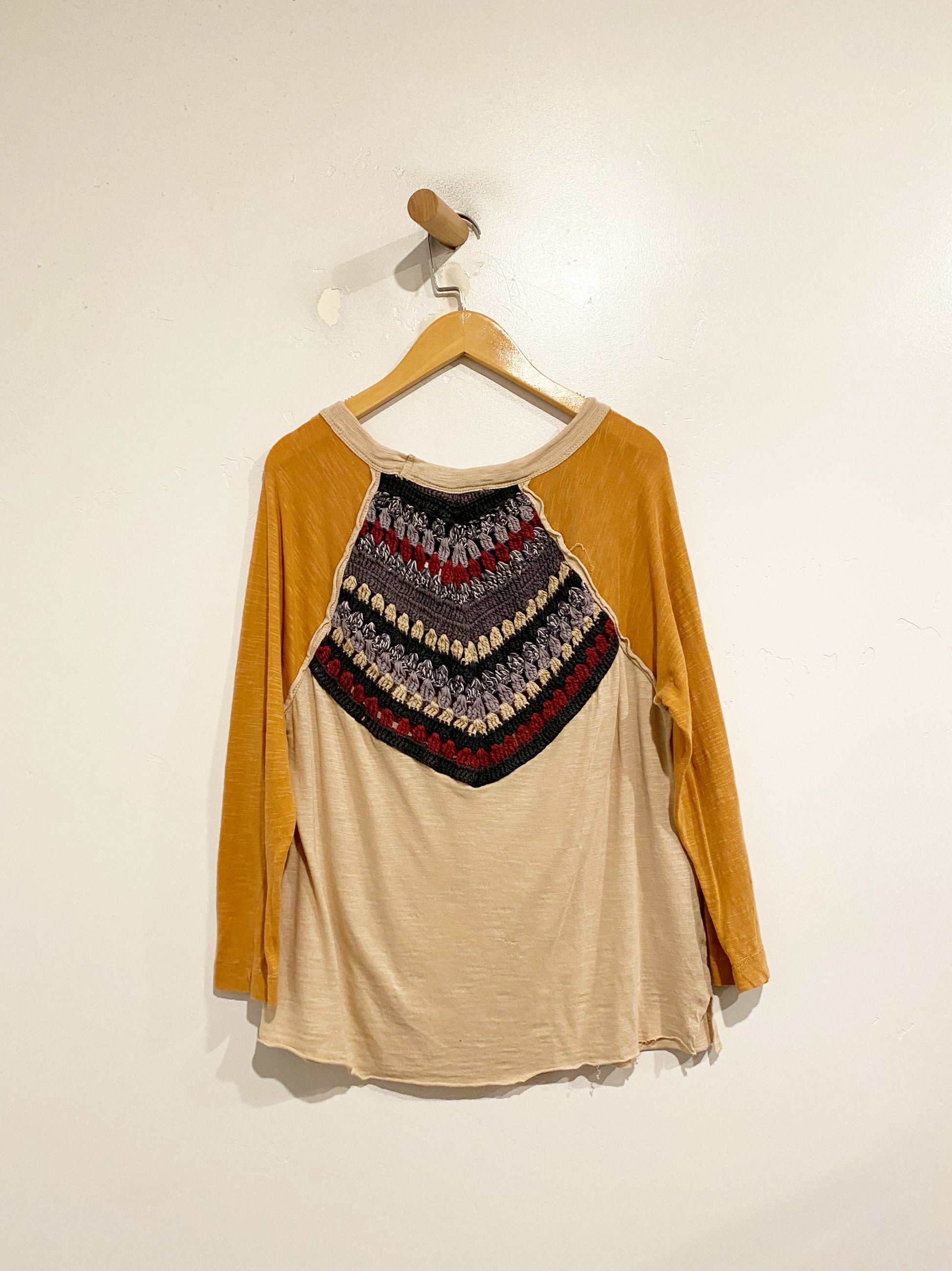 Free People Orange Multi Color Crochet 3/4 Sleeve Top - Large