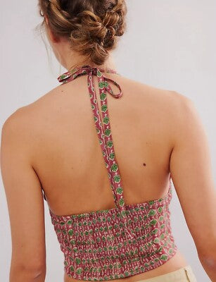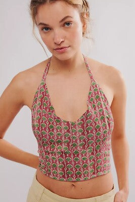 Free People Pink and Green Halter Top - Medium