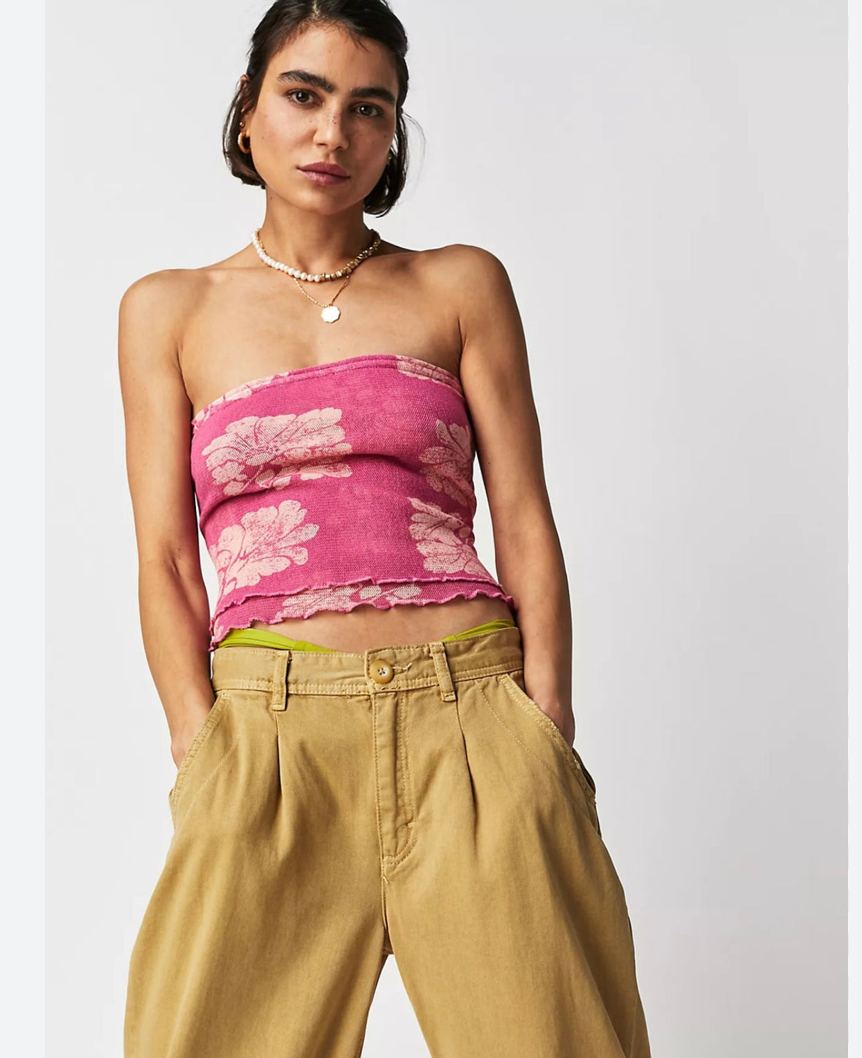 Free People Poppy Pink Floral Mesh Tube Top - Large