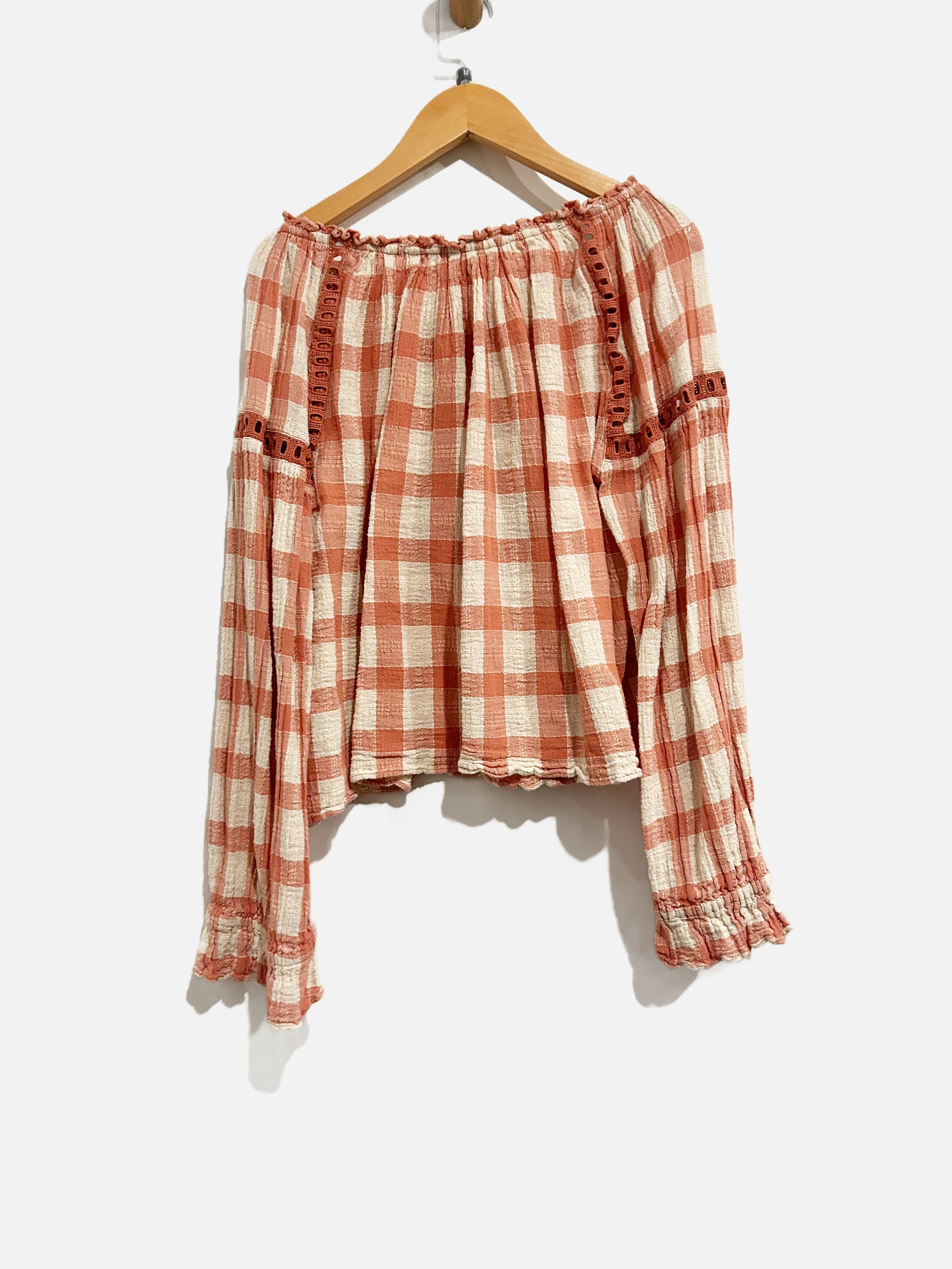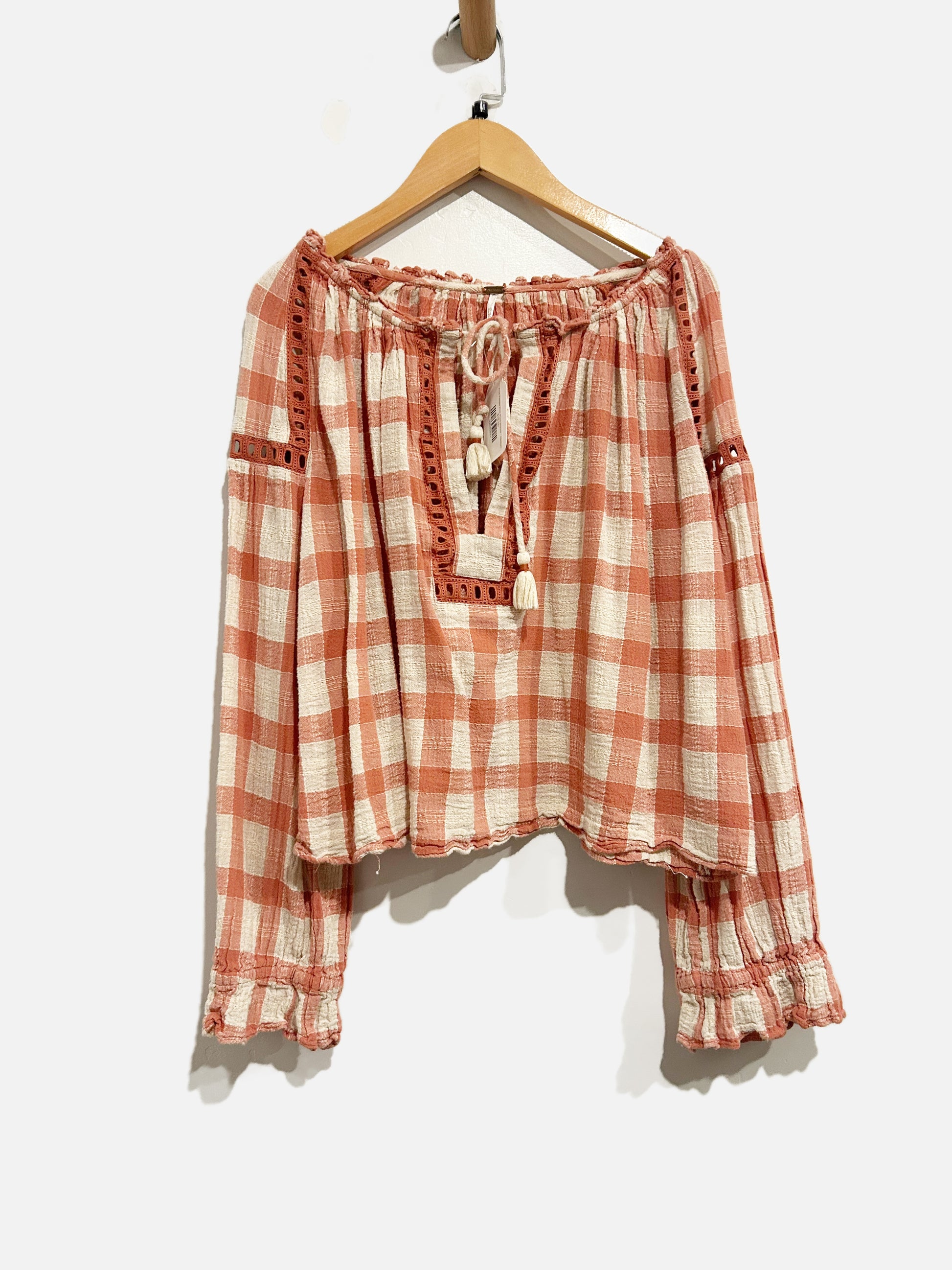 Free People Honey Grove Pink Gingham Blouse - Medium
