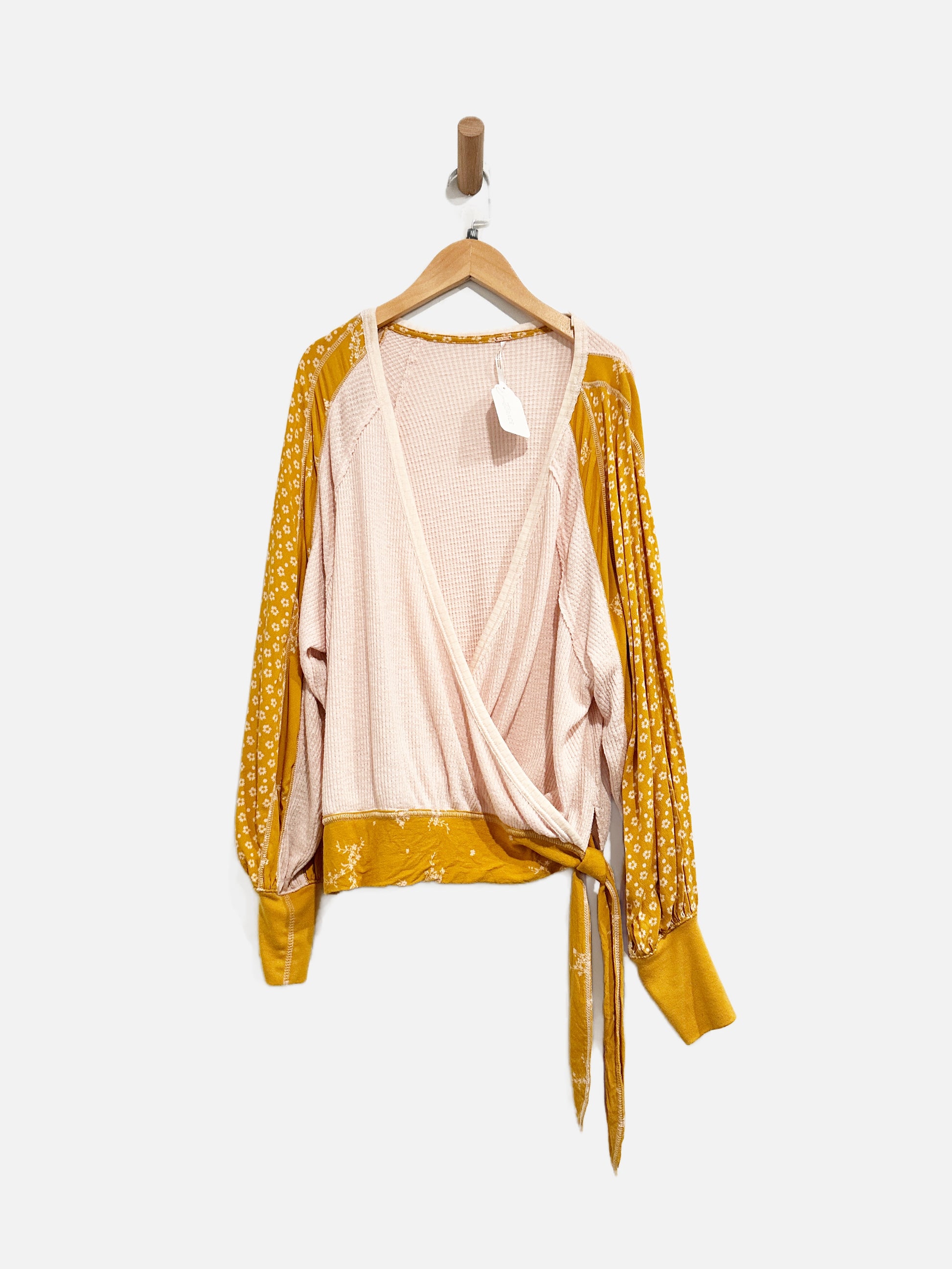 Free People Auxton Pink Waffle Knit Wrap Top - Medium