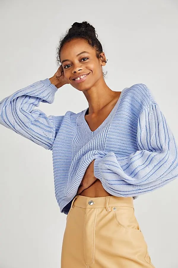 Free People When it Rains Cable Knit Sweater - Small
