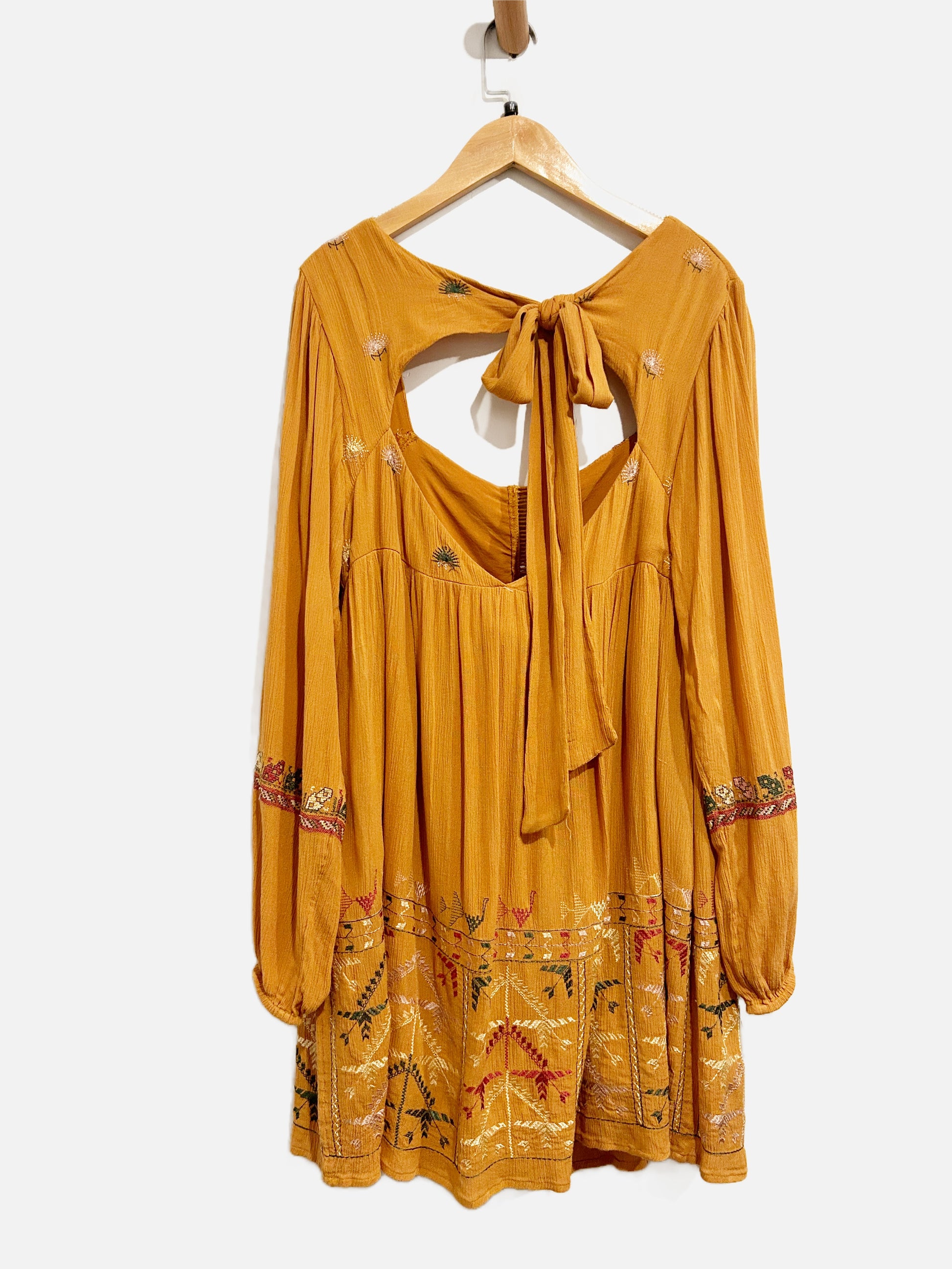 Free People Rhiannon Tan Embroidered Dress - Medium