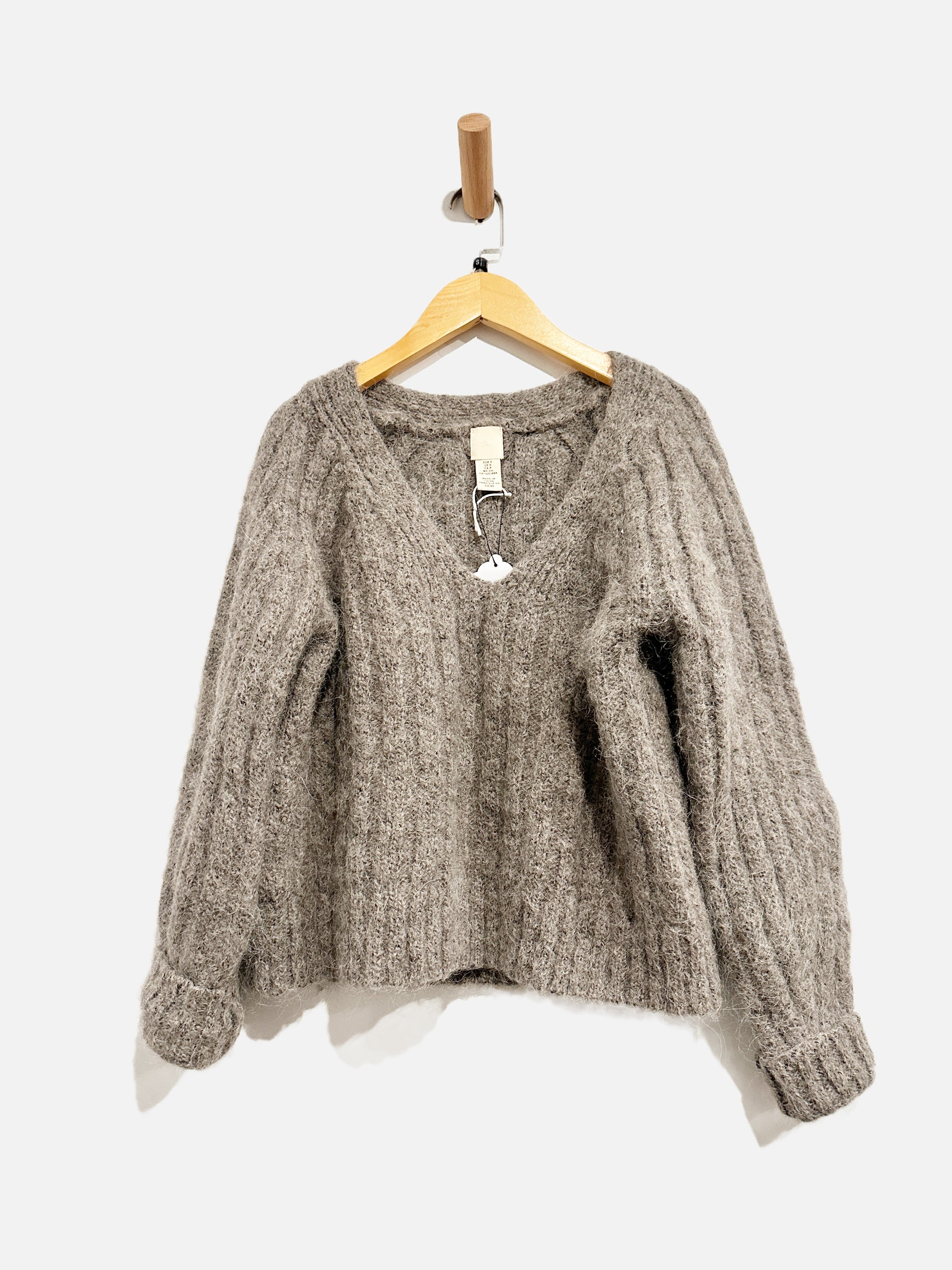 $$ H&M Taupe Crop V Neck Sweater - Small