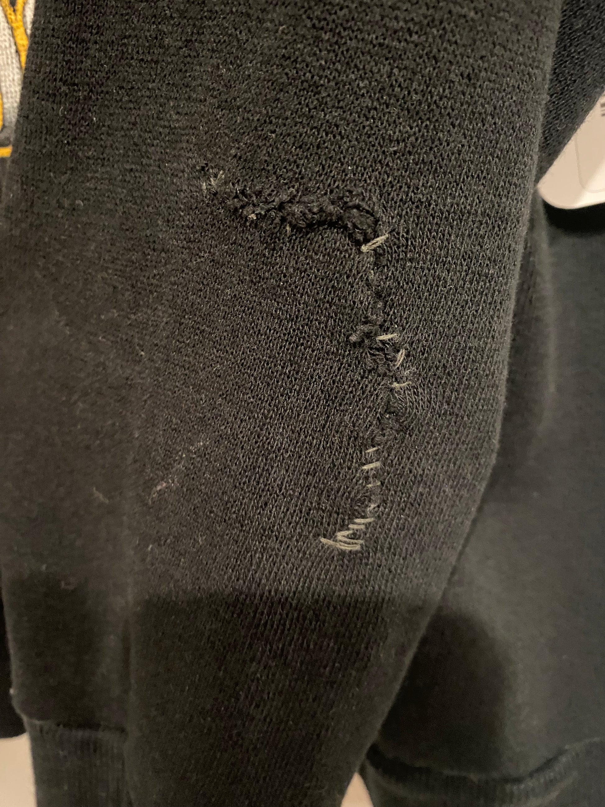 Please note that one sleeve has been mended. See photo