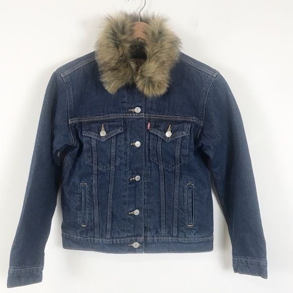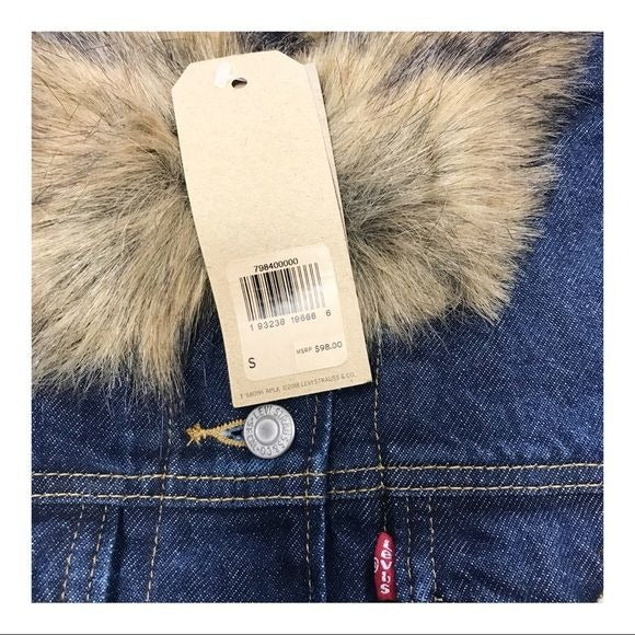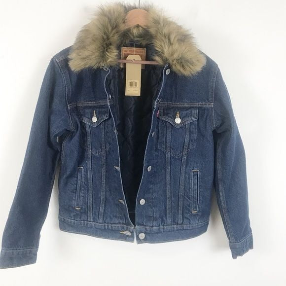Levi’s NWT Fur Collar Ex Boyfriend Trucker Jacket Size Small