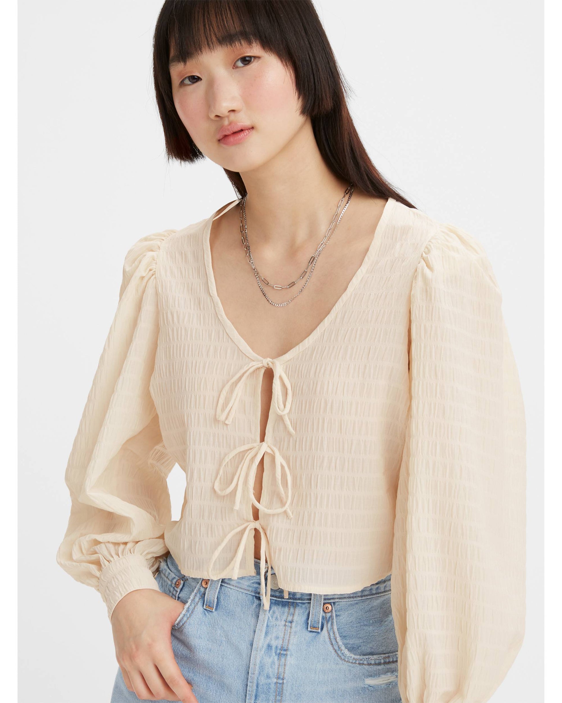 Levi’s Pink Puff Sleeve Tie Front Blouse - Large