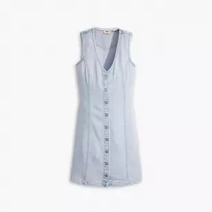 Cut with a flattering A-line silhouette, the Thora Denim Mini Dress features a v-neckline, a button-up front and a figure-hugging mini cut.