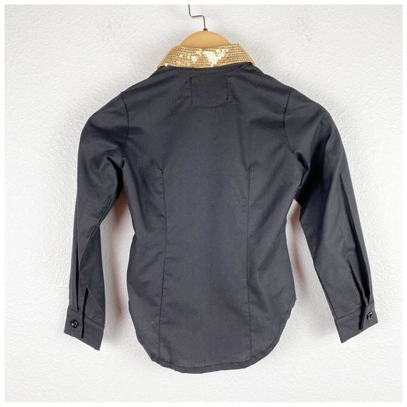 Liv Kids NWT Sequin Button Down Long Sleeve Shirt in Black Size 4/5