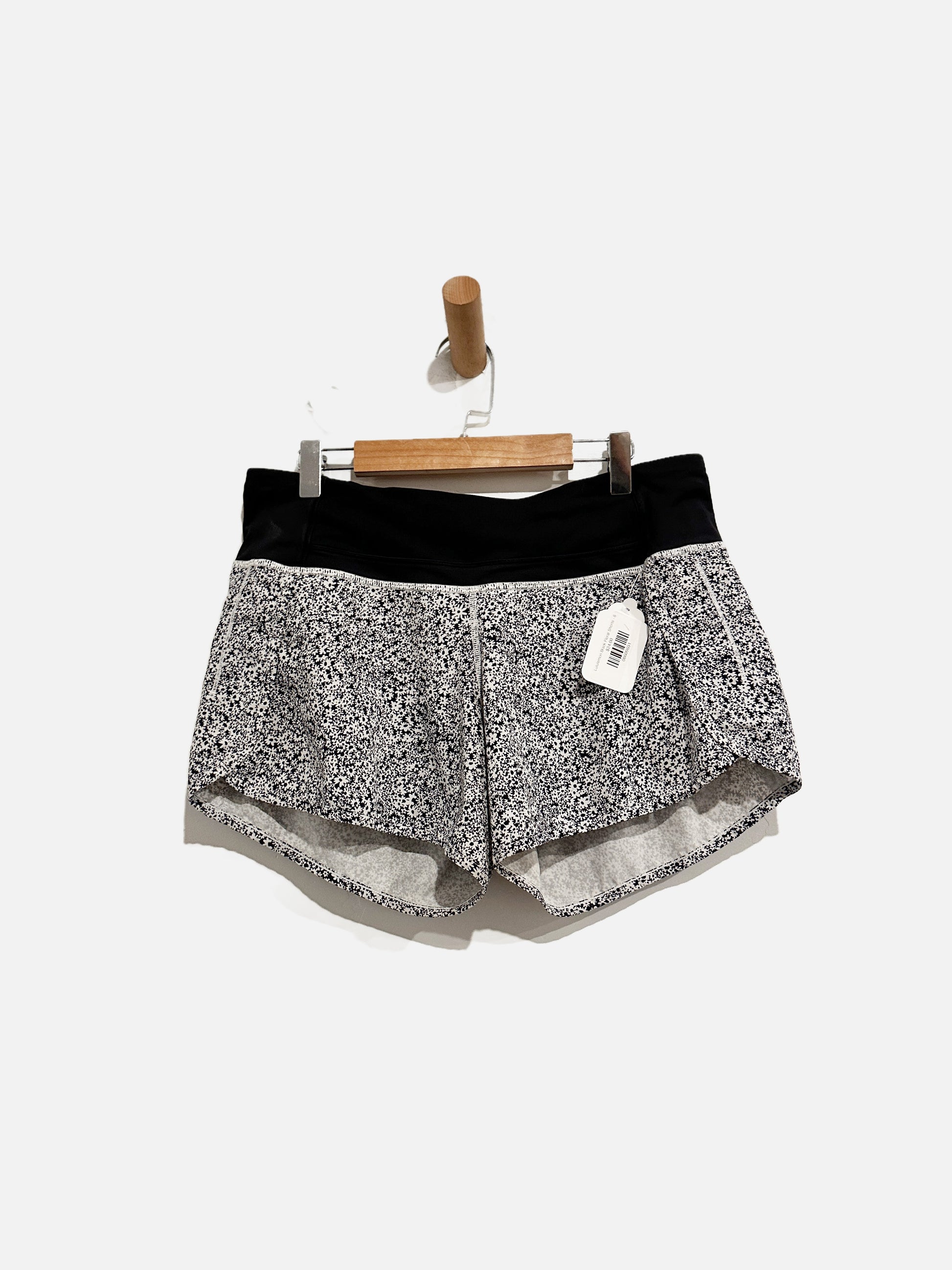 Lululemon Run Times Short (4-way Stretch 4") in Ditsy Daisy White Black / Black - 6