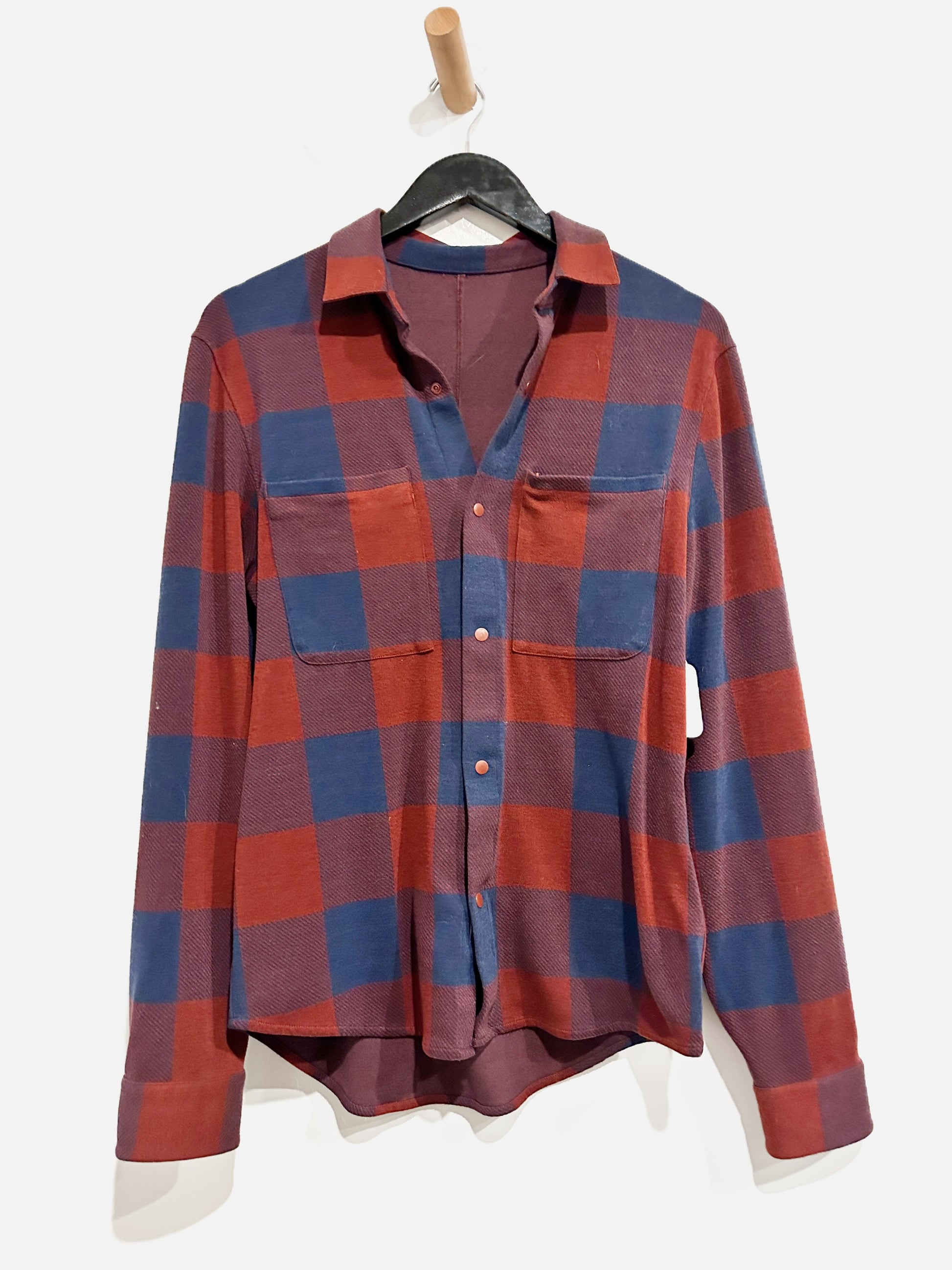 Lululemon Soft Knit Overshirt in Check Plaid Rockwood Atmospheric Purple - Small