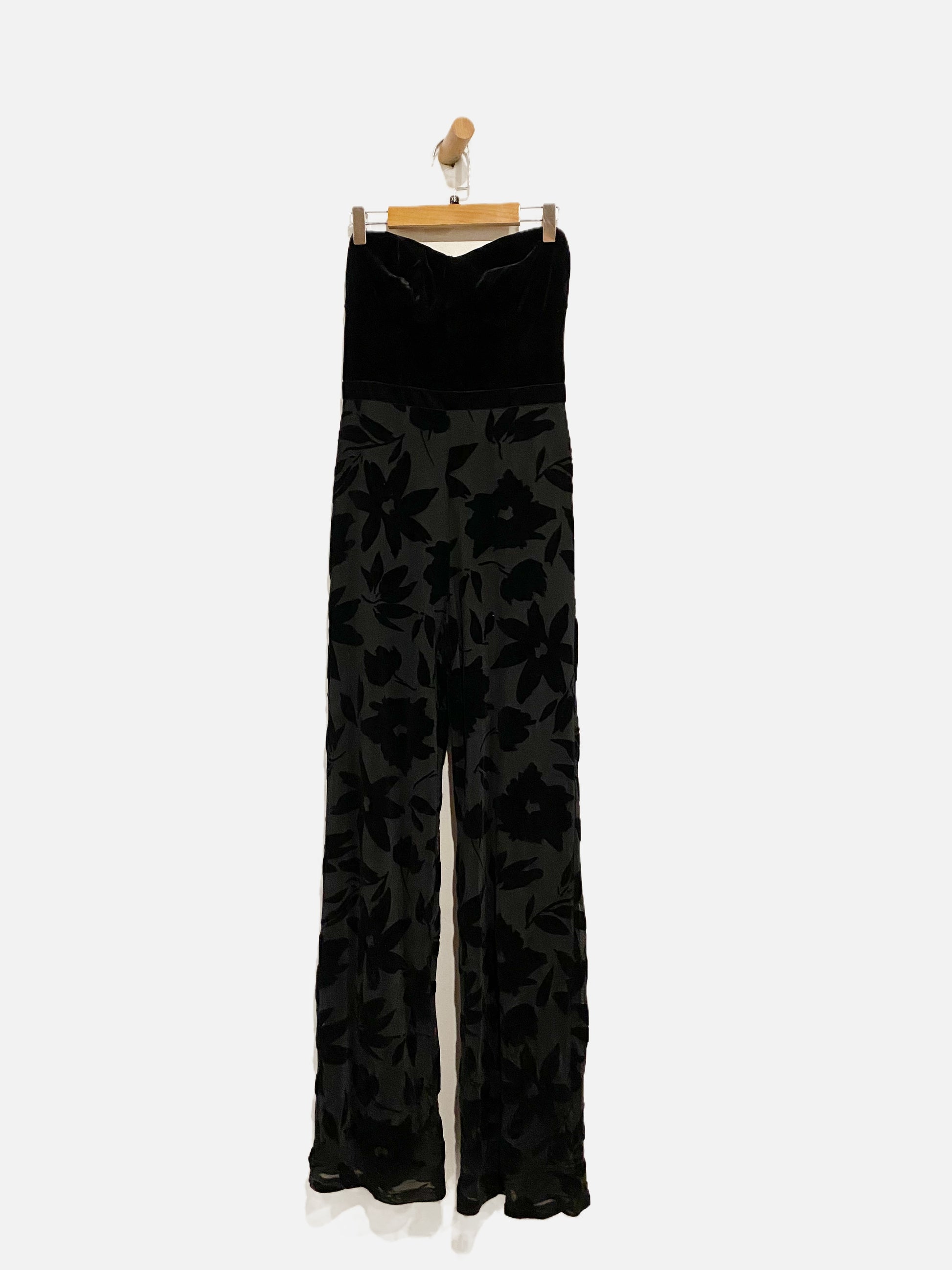 Lulus Black Velvet Floral Jumpsuit - XS