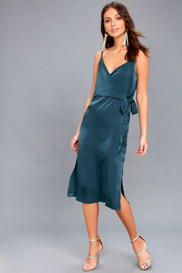 Lulus Blue Wrap Front Midi Dress - Medium