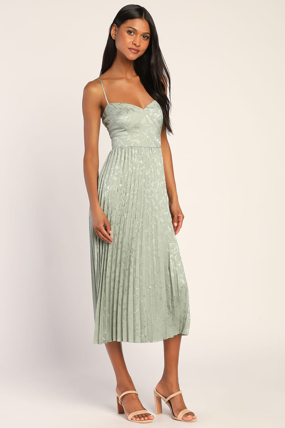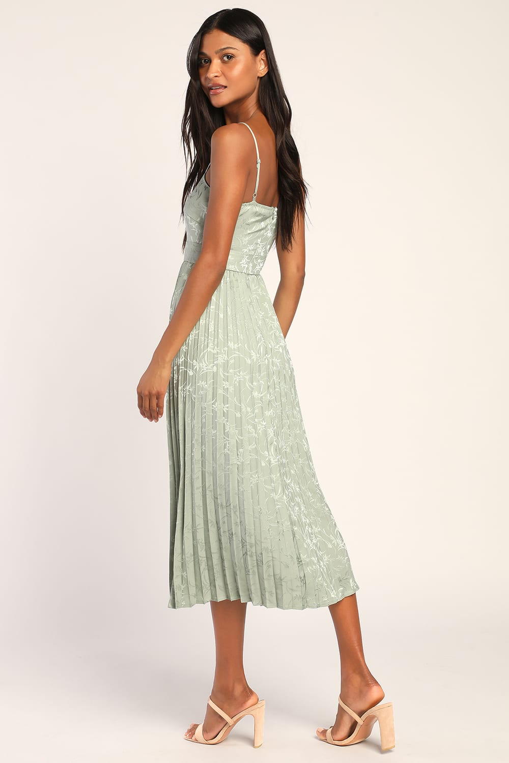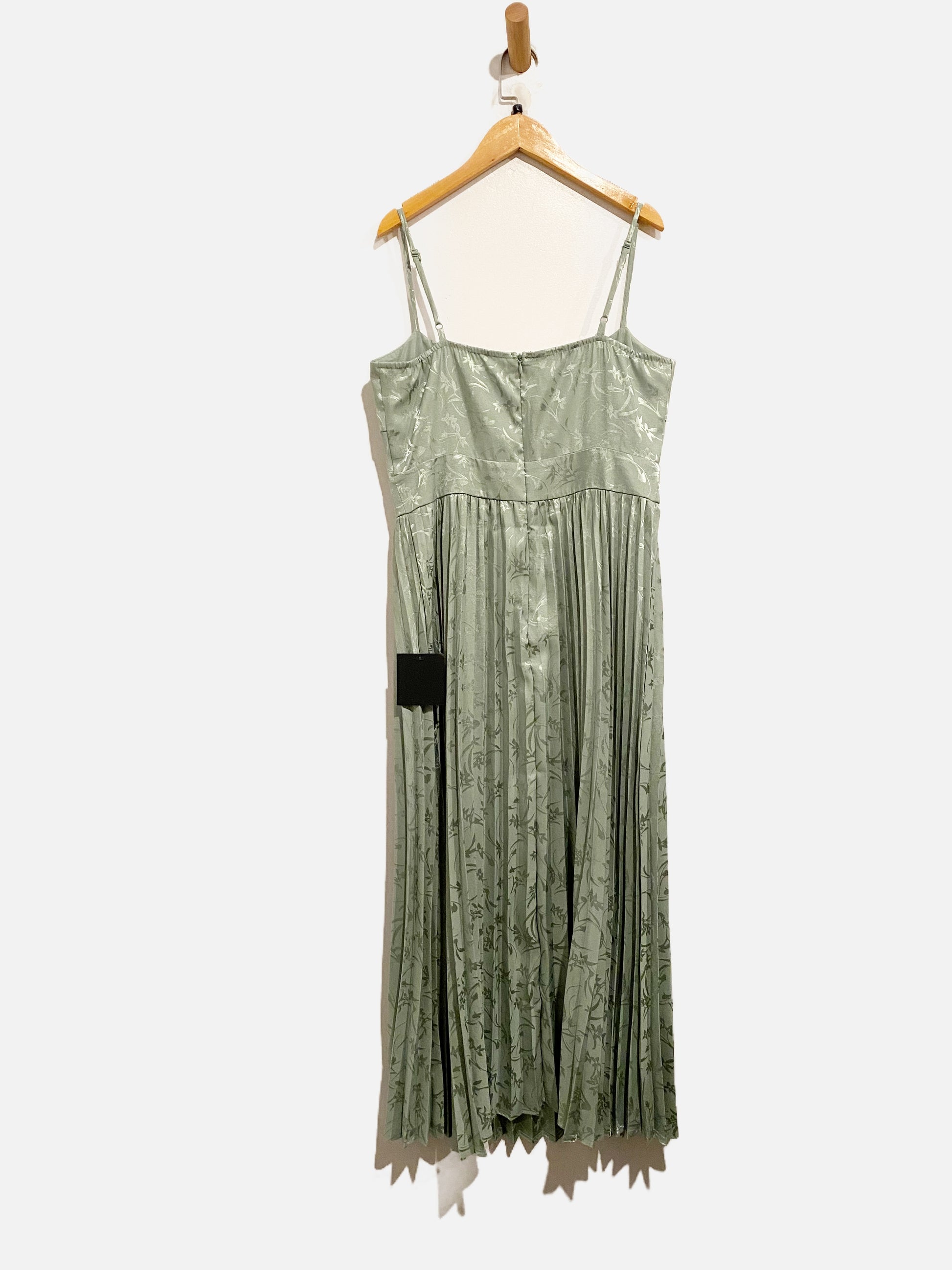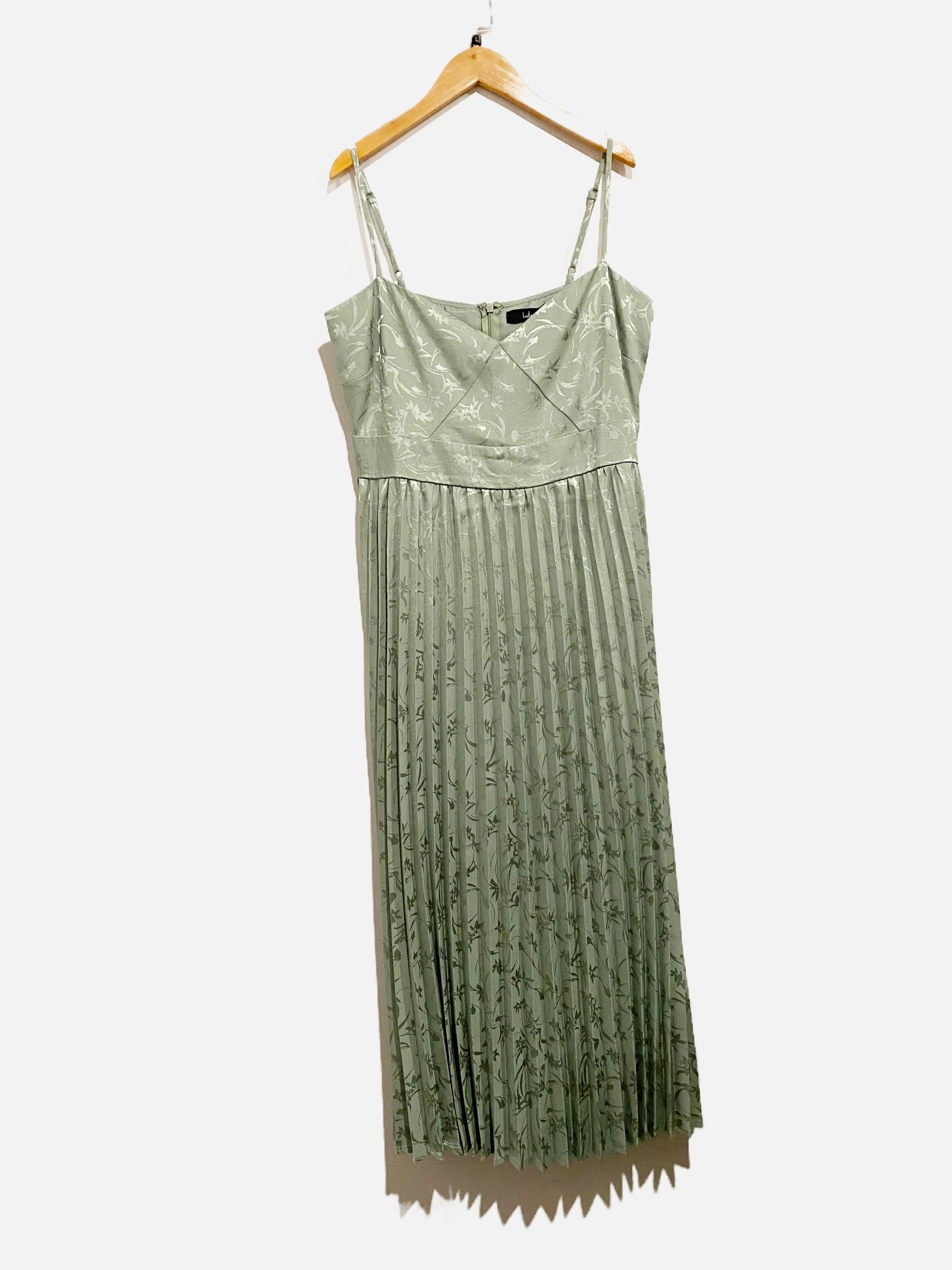 Lulus Green Satin Pleated Floral Midi Dress - Large