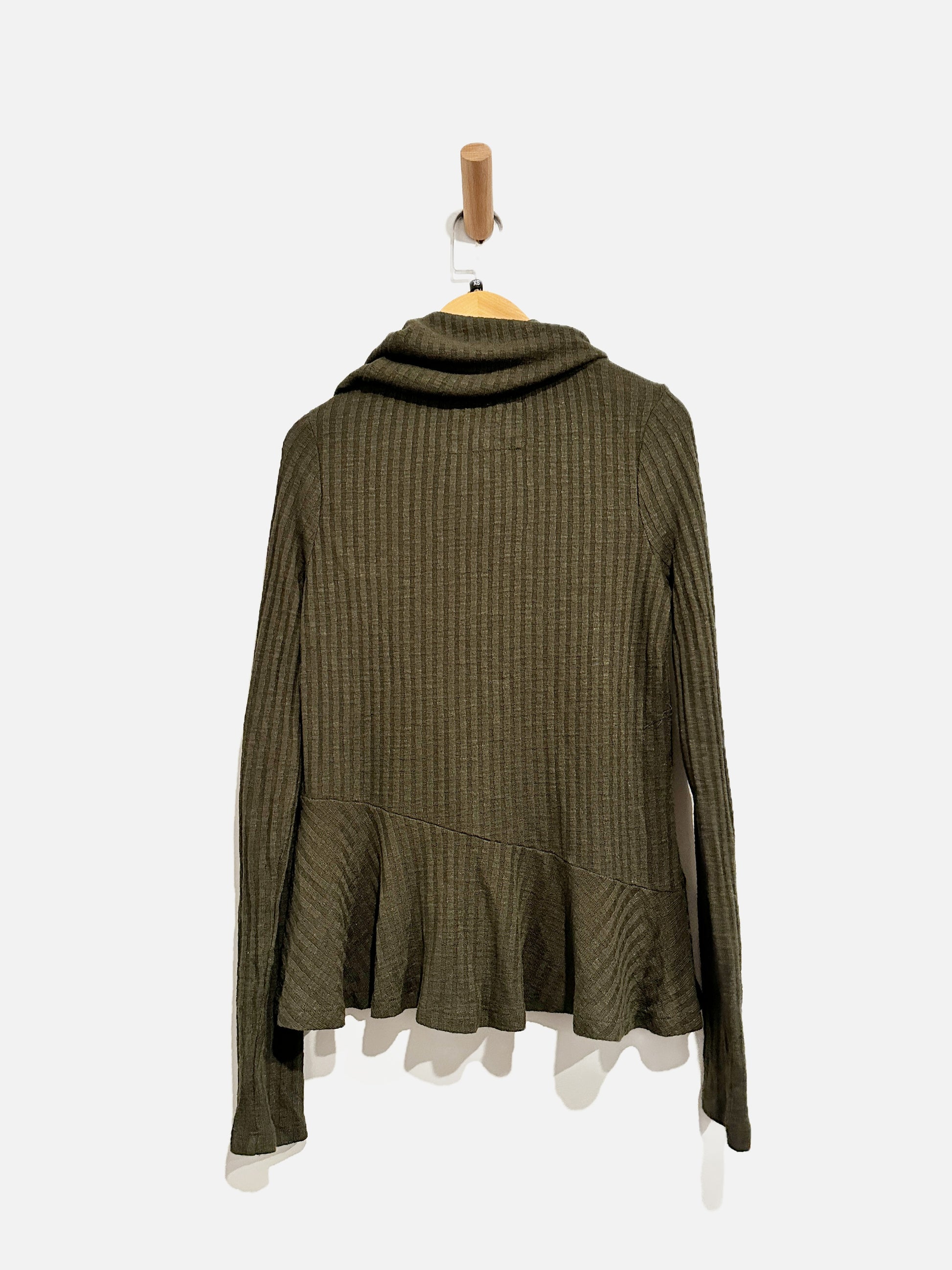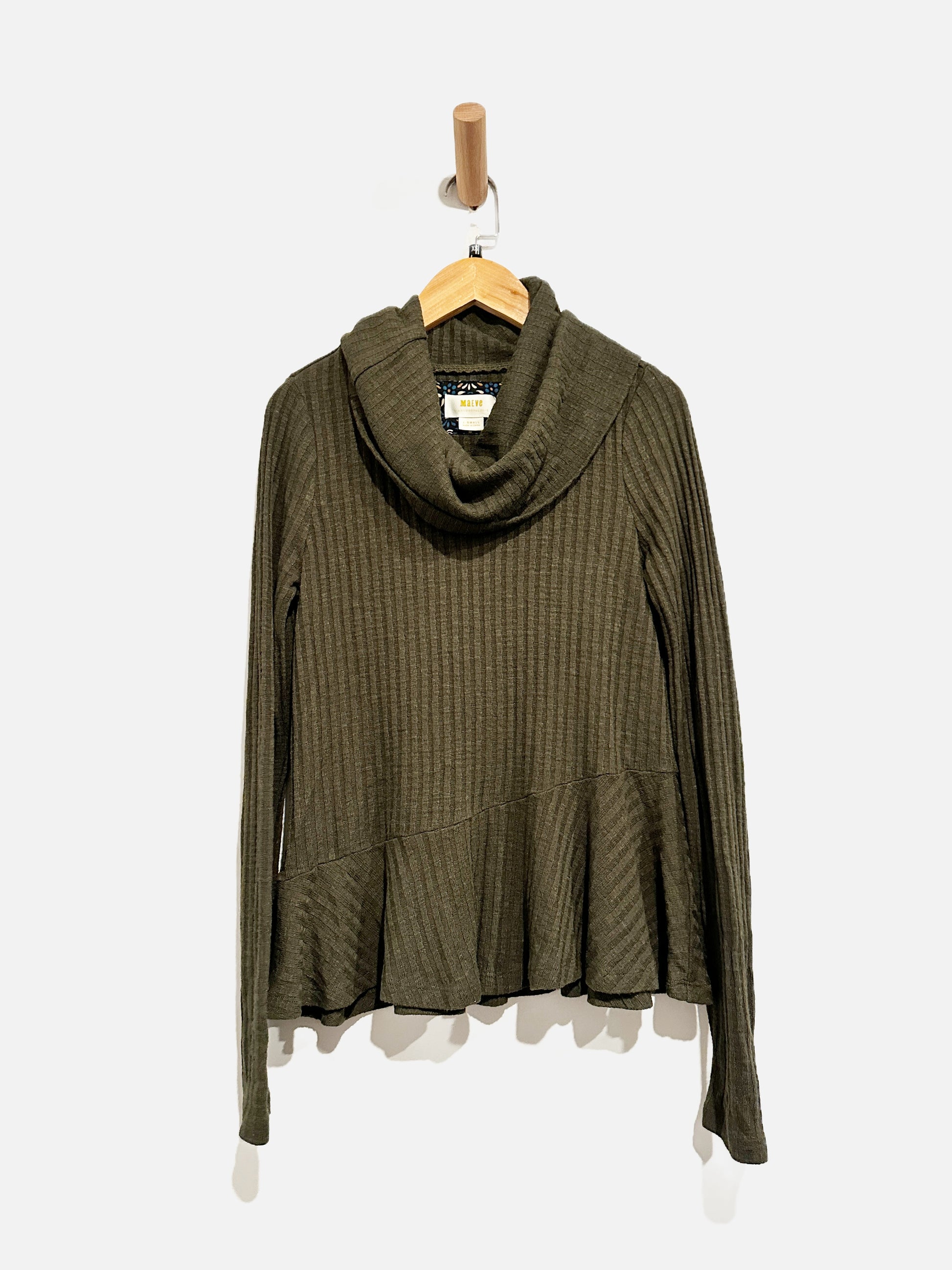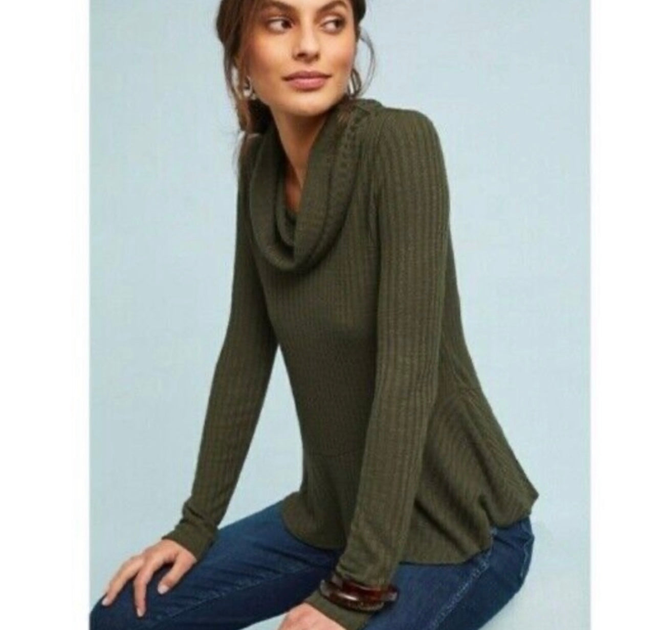 Anthropologie Maeve Green Ribbed Cowl Neck Top - XS