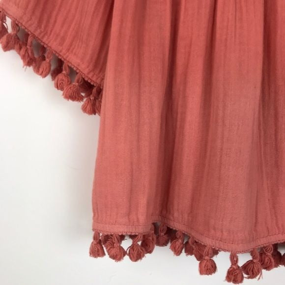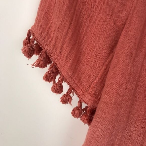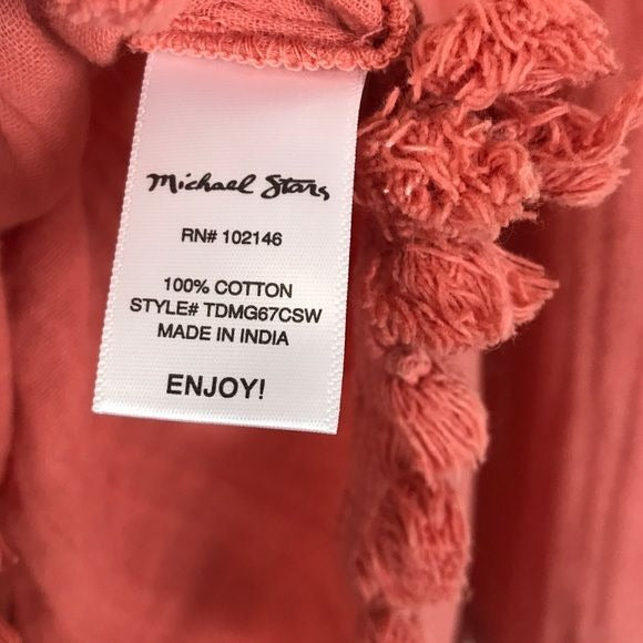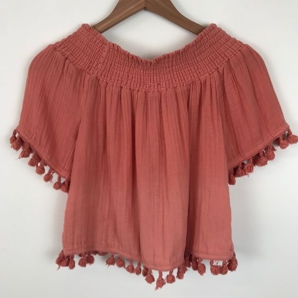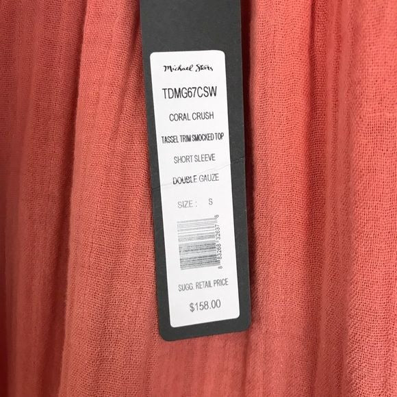 Michael Stars Tassel Trim Smocked Top in Crushed Coral Size Small