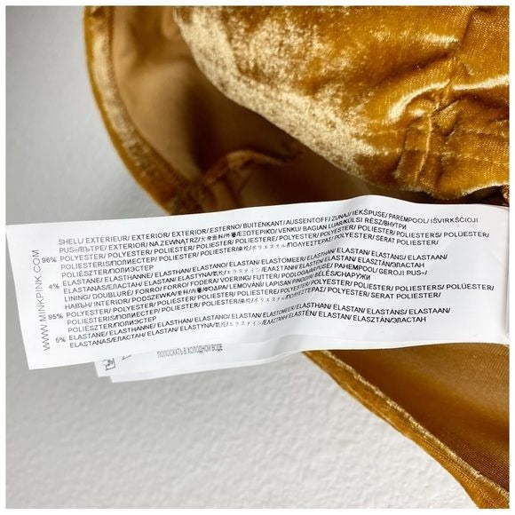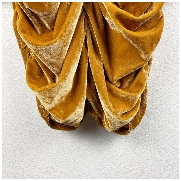 MinkPink NWT Meknes Gold Velvet Ruched Mini Dress Size Medium