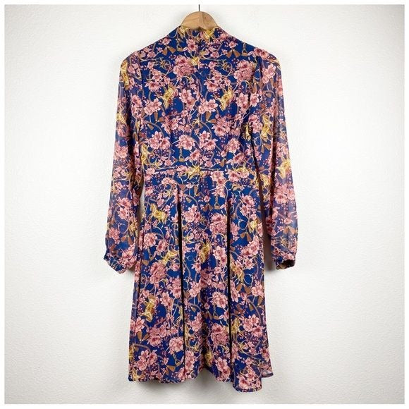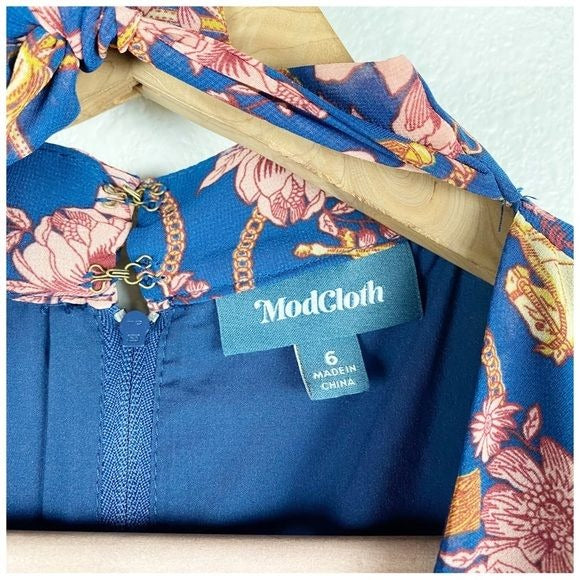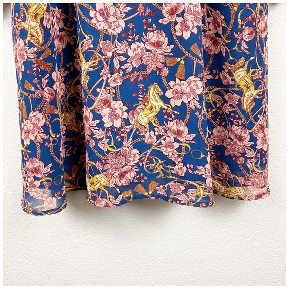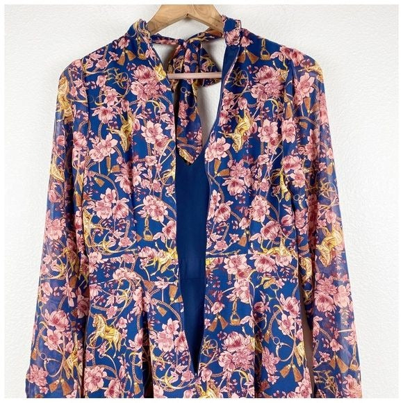 ModCloth Blue & Pink Floral Long Sleeve Horse Dress Size 6