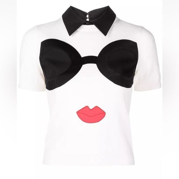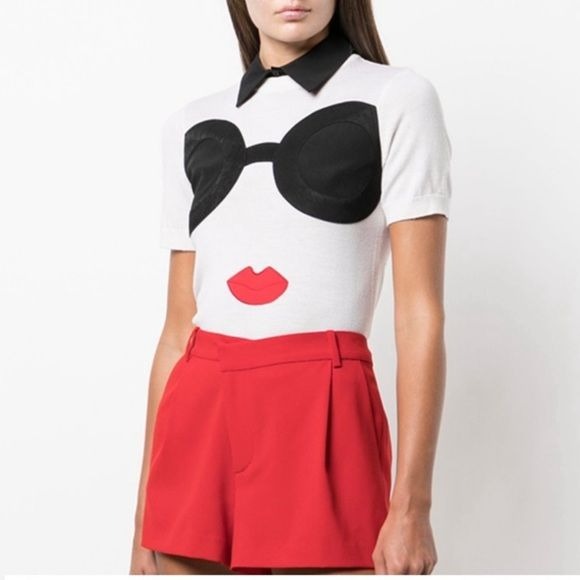 NWT Alice and Olivia Linden Stace Face Short Sleeve Sweater Size Small