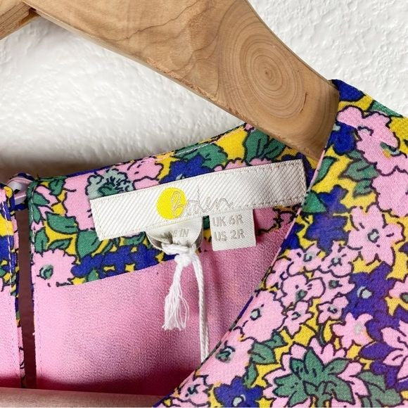 NWT Boden Plisse Pink Floral Ruffle Dress Size 2