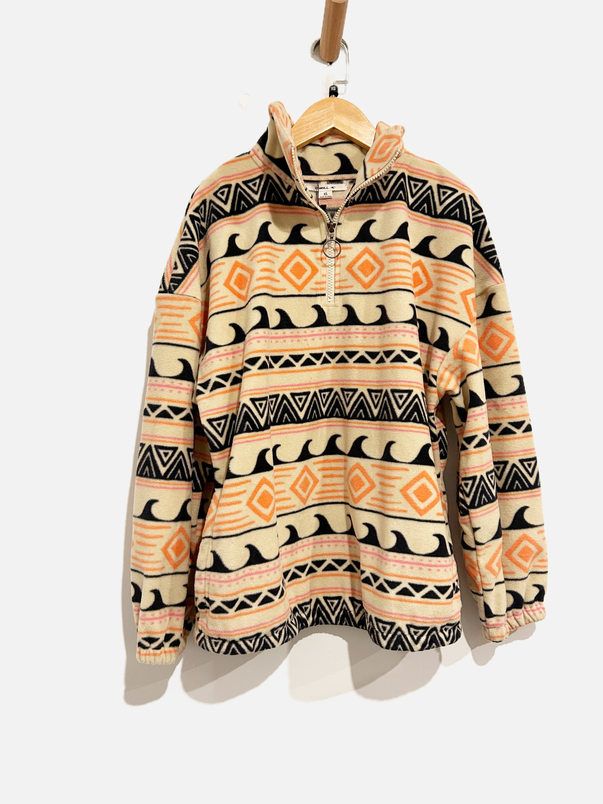 O’Neill Cream/Navy/Orange Patterned Fleece Pullover -XS