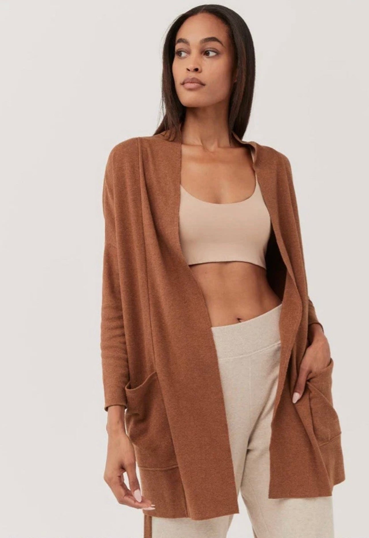 Pact 100% Tumeric Brown Organic Cotton Long Open Airplane Cardigan - S/M