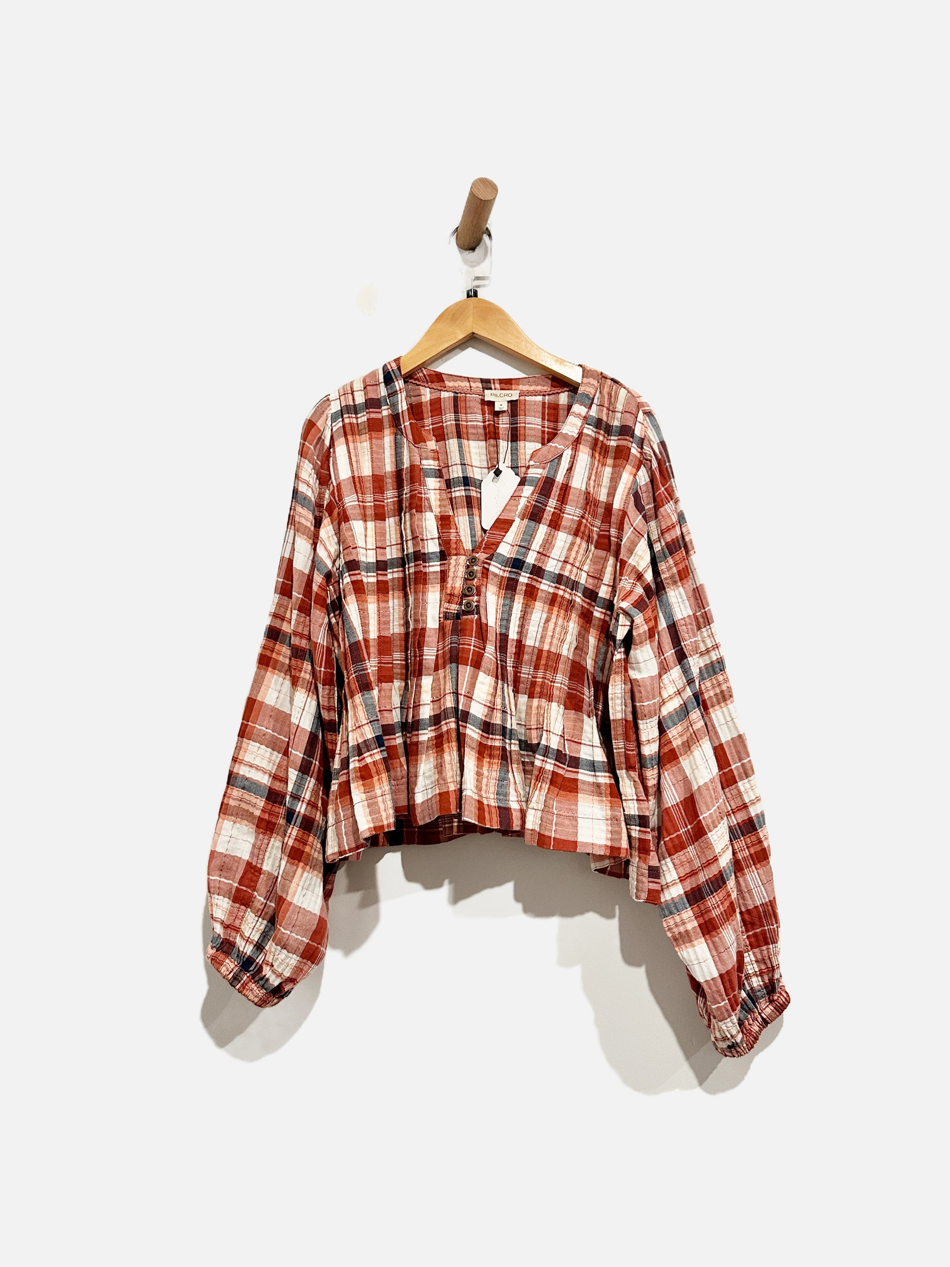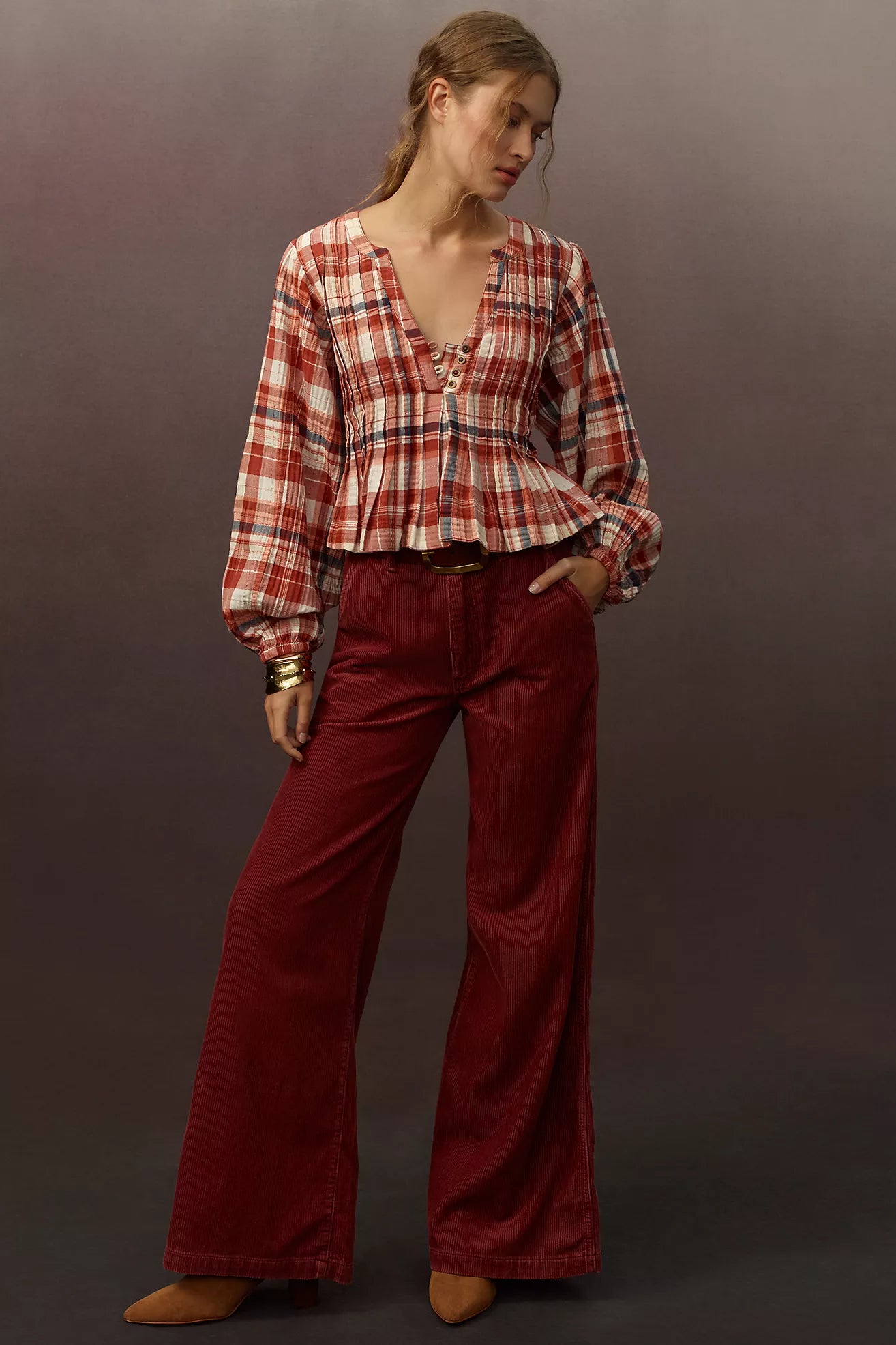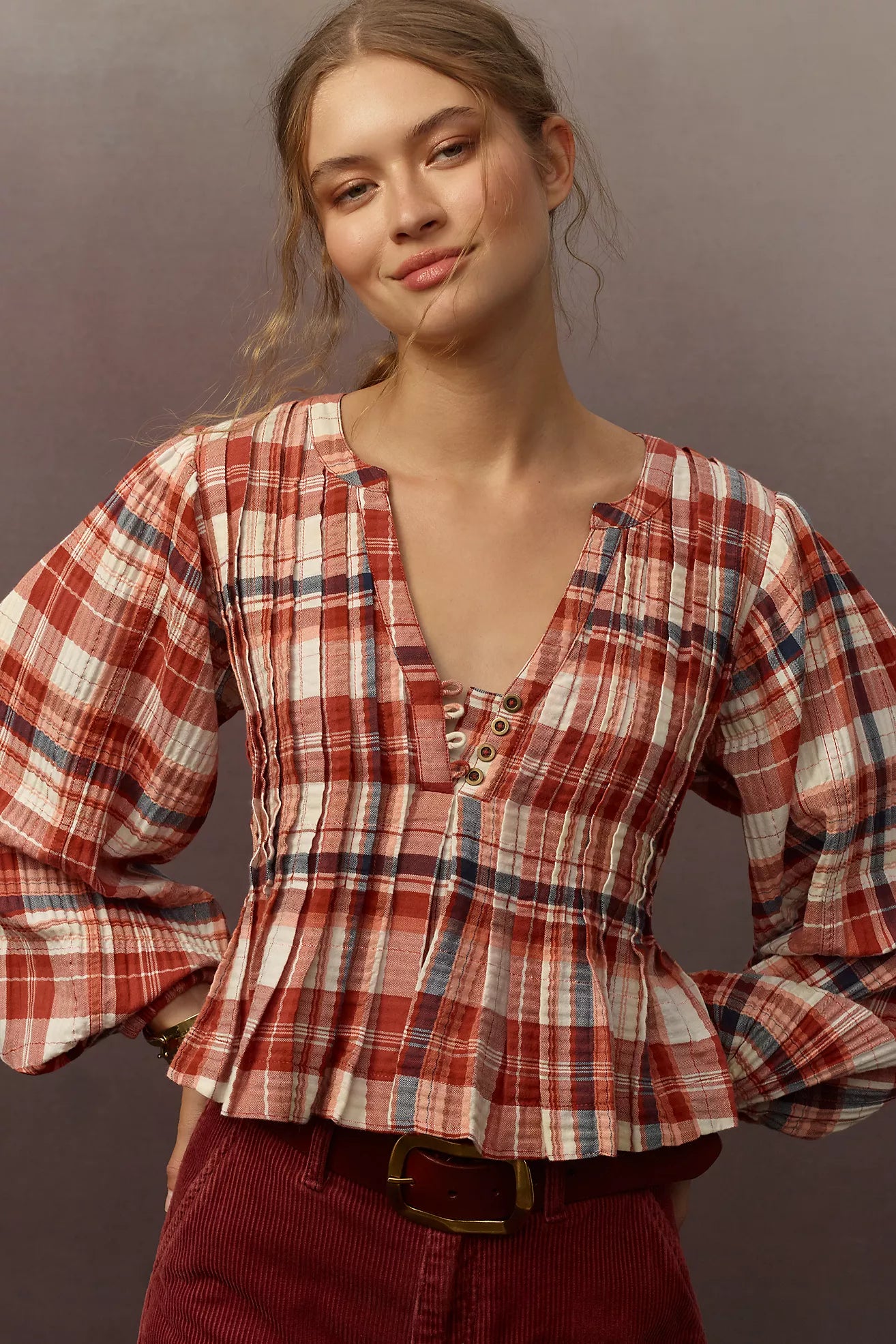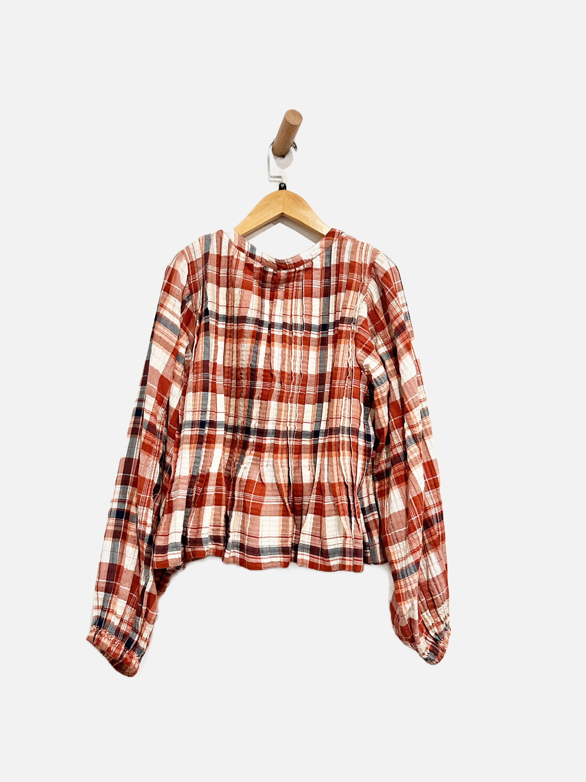 Anthropologie Pilcro Red Plaid Button Front Blouse - Medium