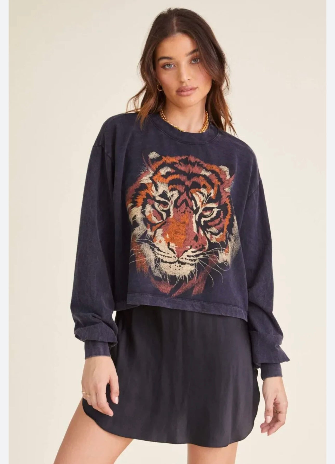 Project Social Tee Black Tiger Graphic Sweatshirt - Medium