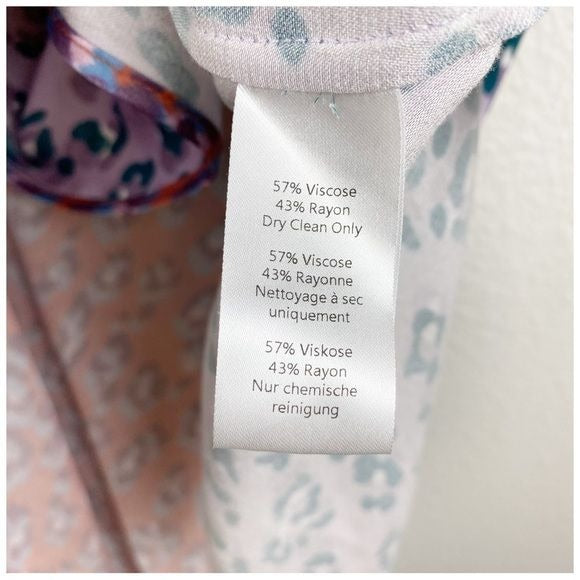 V neck wrap dress in colorblock sateen lilac leopard print.