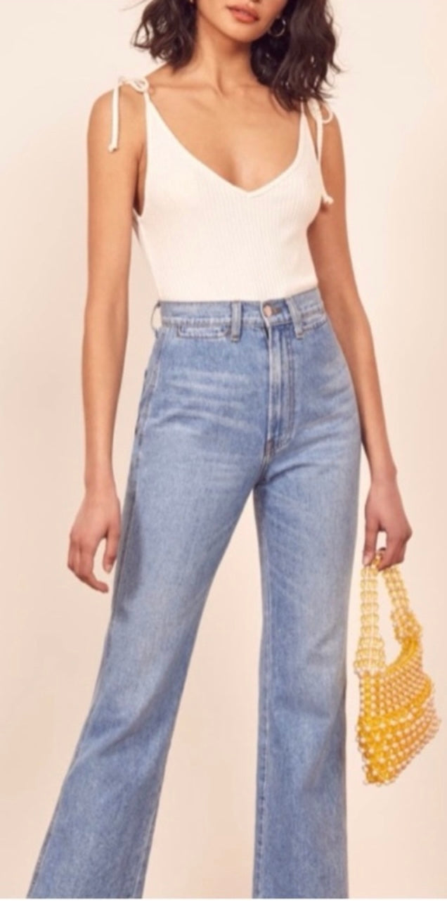 Reformation Amelia White Ribbed Tank - Small