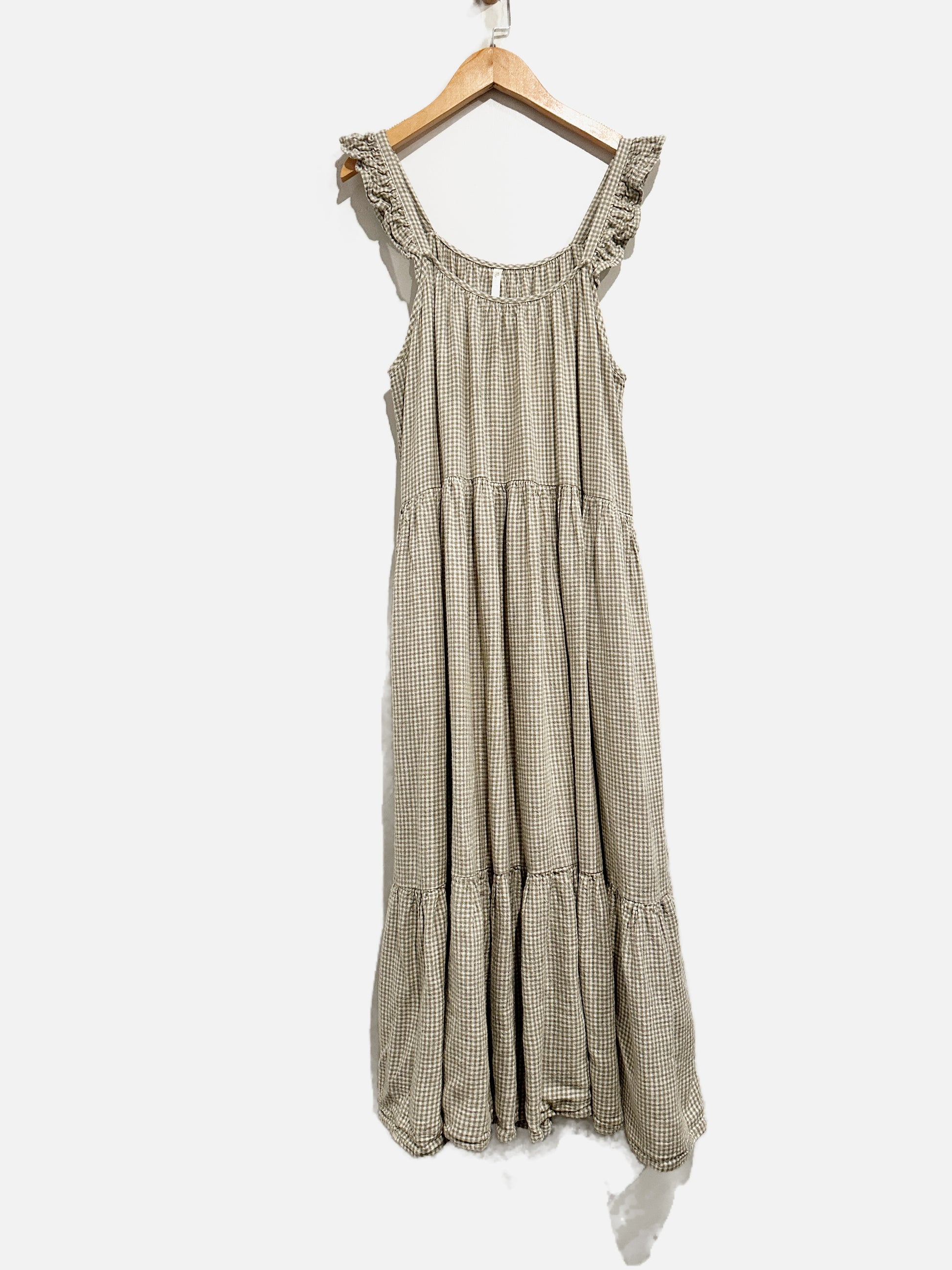 Rylee + Cru Green and White Gingham Midi Dress - Small