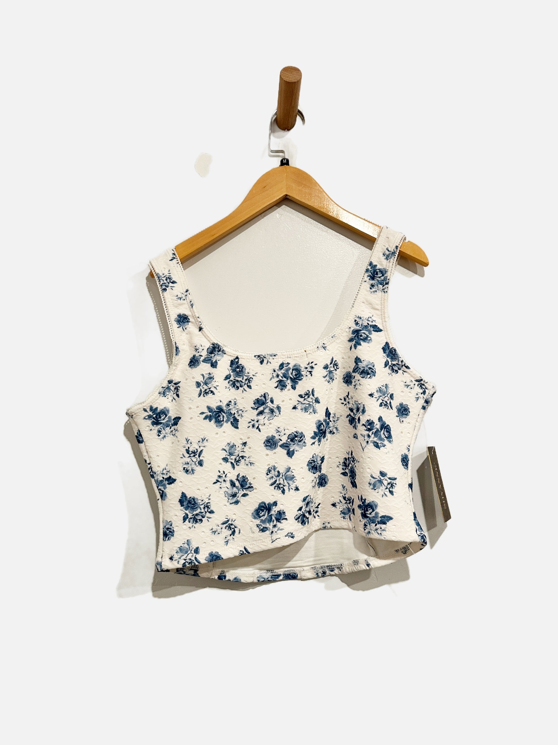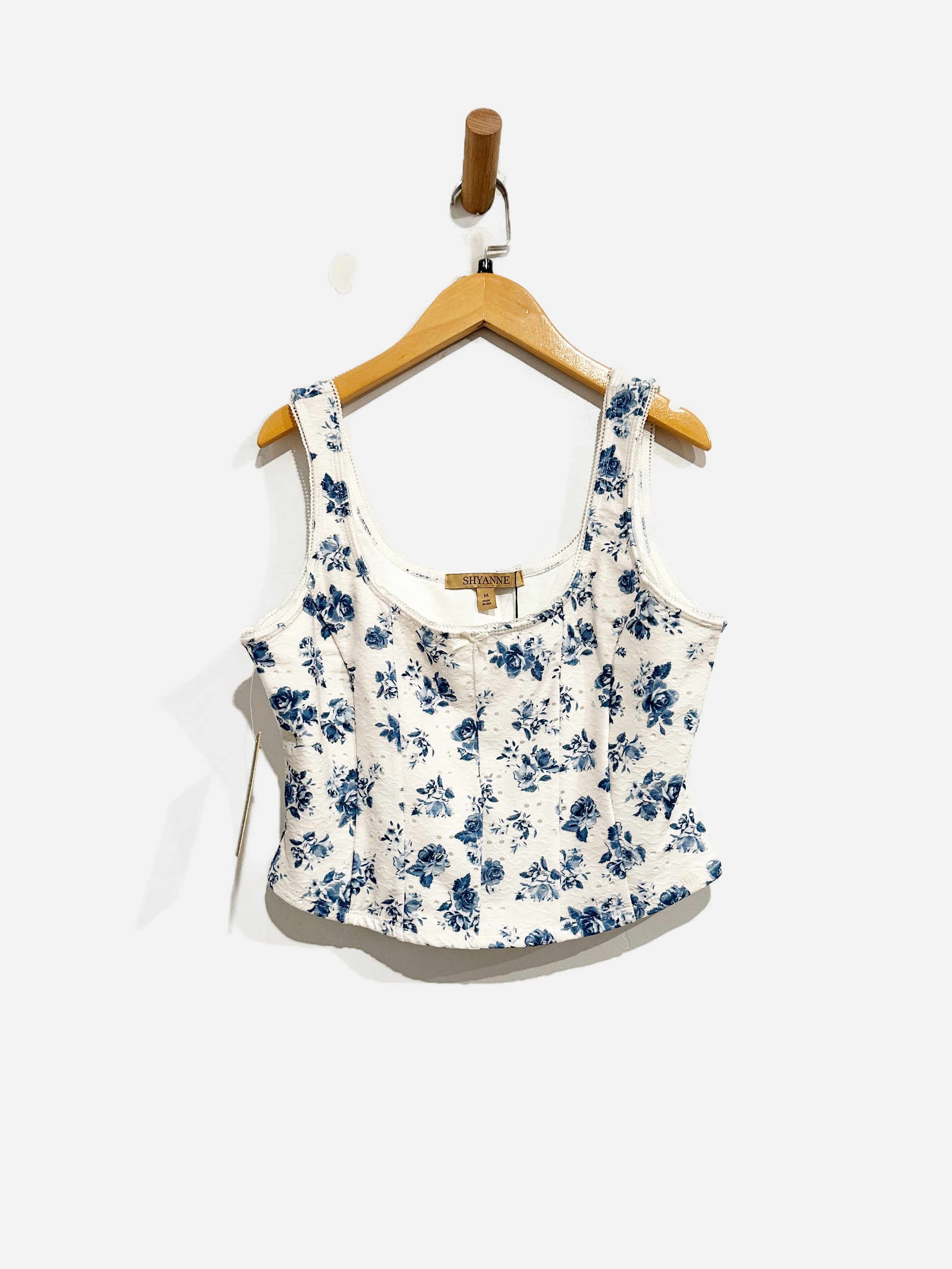Shyanne NWT White and Blue Floral Bustier Top - Medium