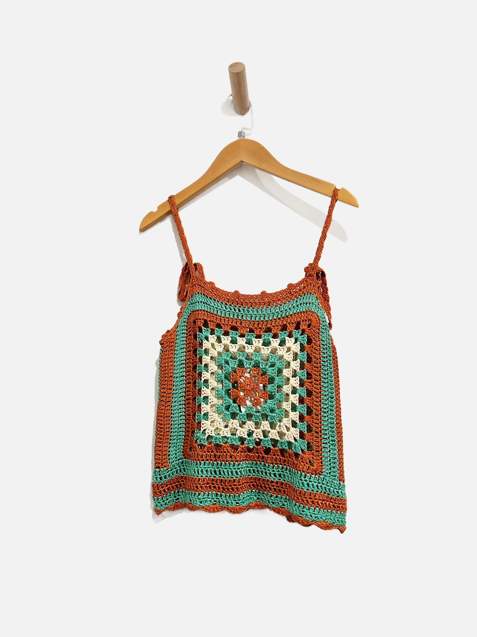 Stolen Hearts Brown/Teal/White Crochet Tank - S/M
